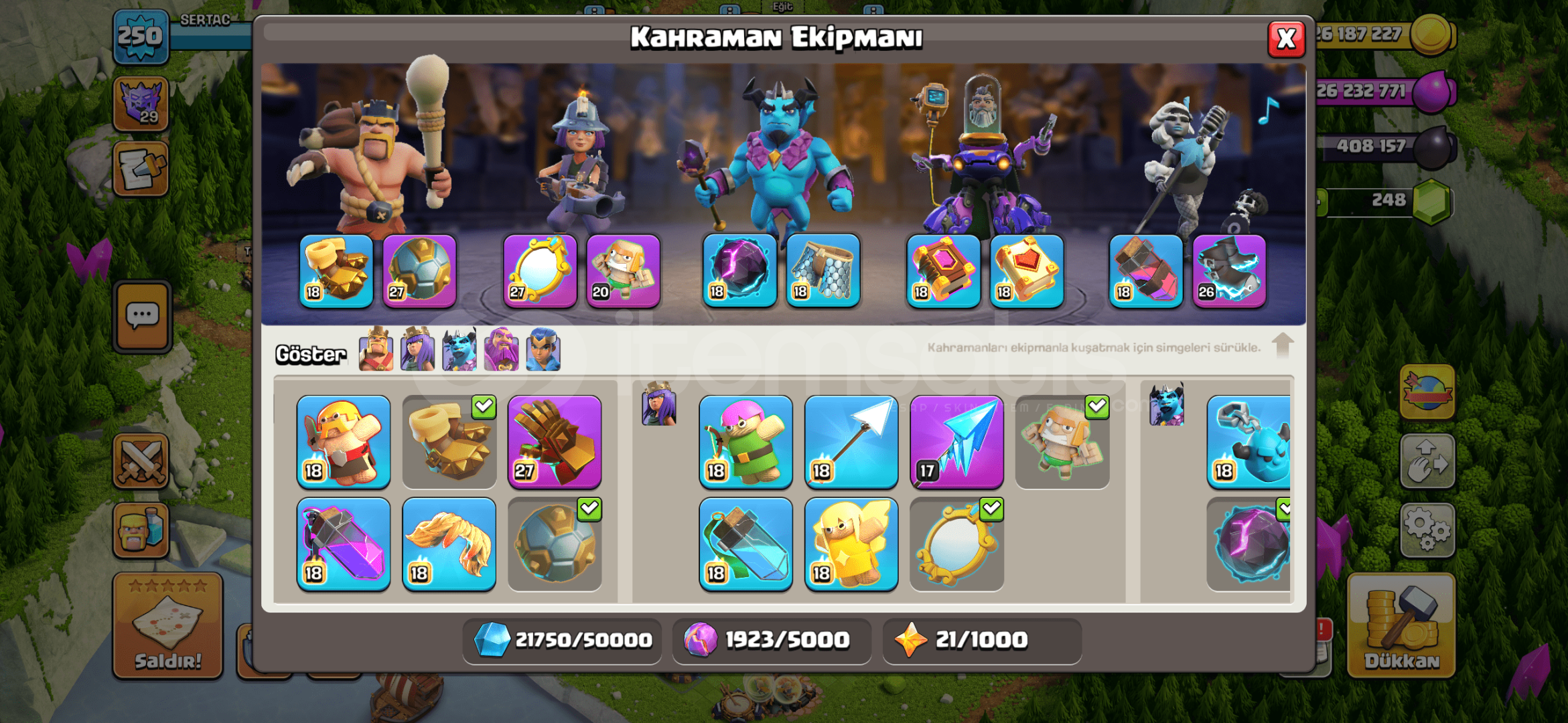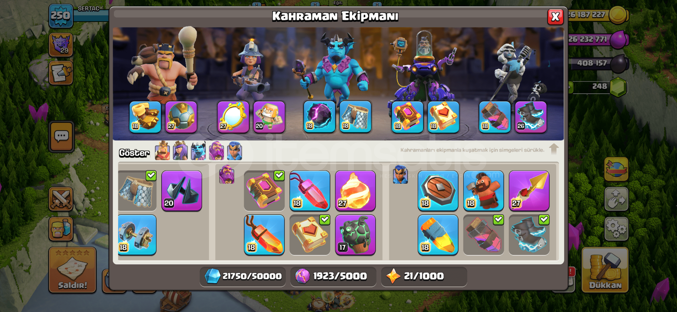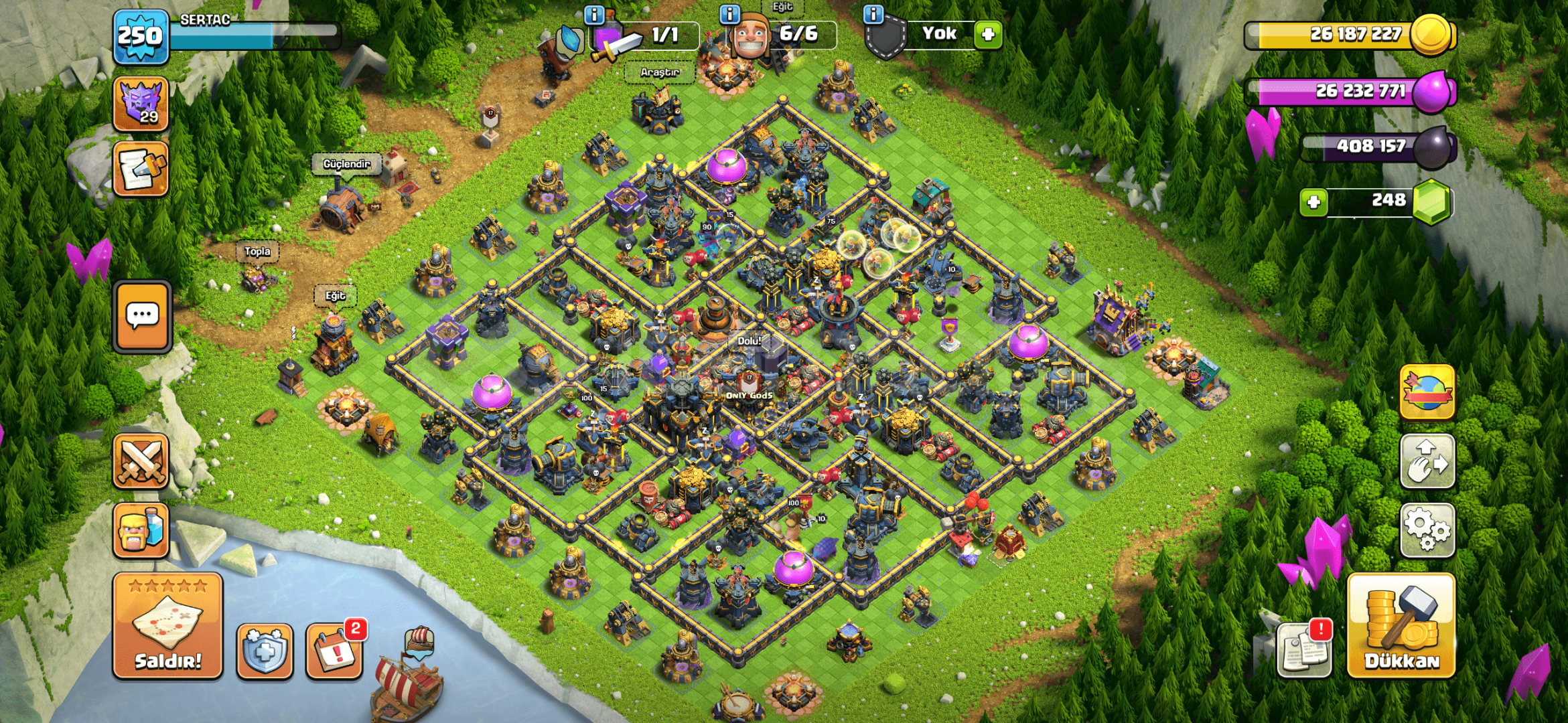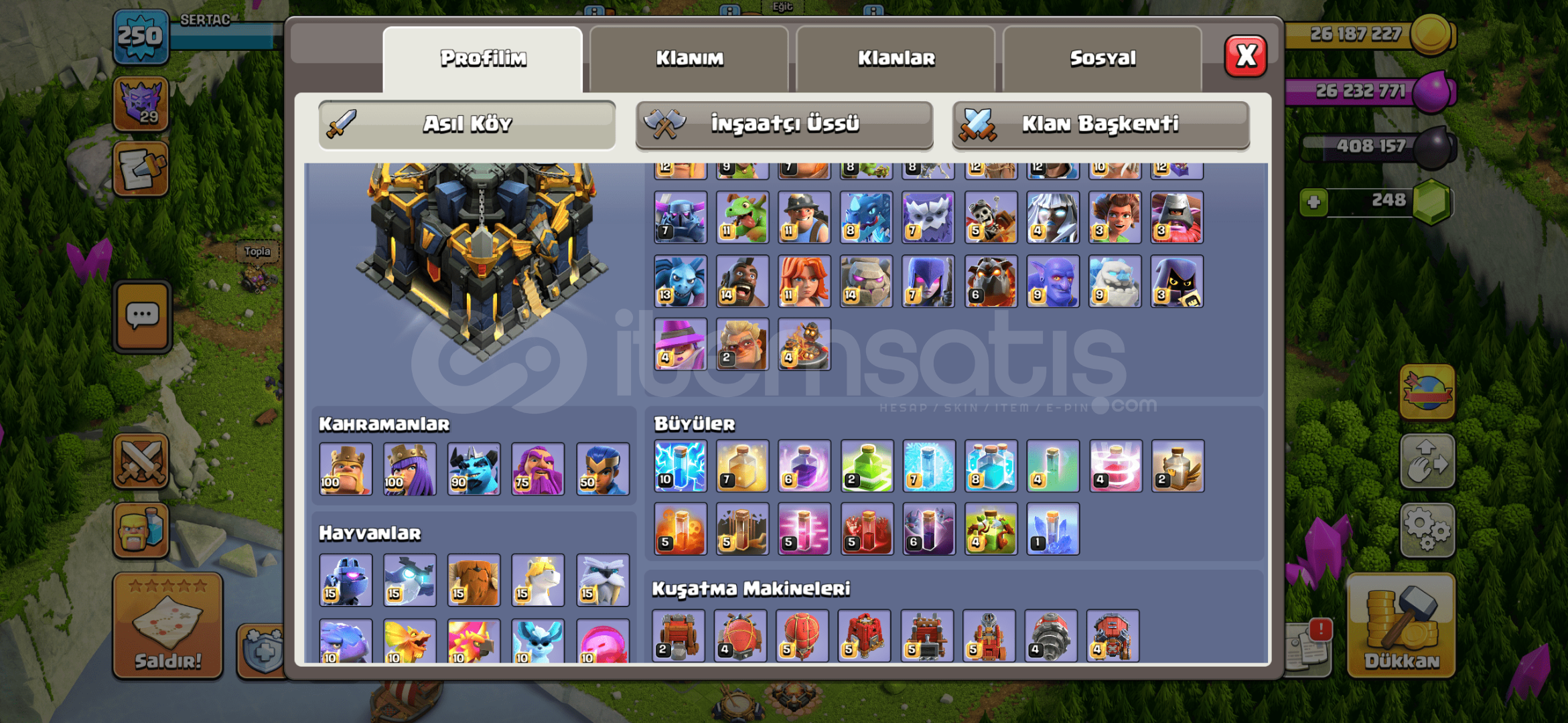 Arkadaşlar hesapta tuzaklar dahil herşey max ve full şarjlıdır. Demircisi harikadır. Bu fiyata böylesini bulamazsınız kaçırmayın. Hesapta telefon koruma YOKTUR. Hesabı aldığınız takdirde hesap yeni açılmış temiz maille verilecektir. Alıcısına şimdiden hayırlı olsun.