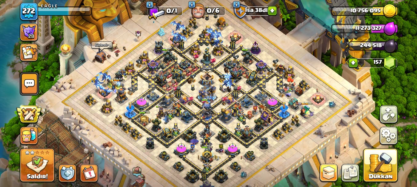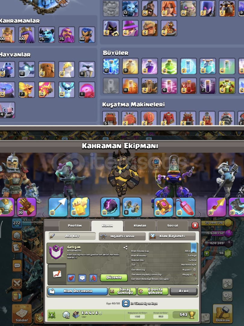 Köyüm göründüğü gibi 18 Maxa gidiyor12sv klan hediyeli GelişimKöyün kodu: #8YPR2C28U her zaman bakabilirsiniz272 seviyedir oldukça yüksek2600 Ks yıldızı vardır çok iyi sayıToplam 8 ücretli önemli olan açık deniz ve mısır arkaplan vardırToplam 23 kostüm vardırHerolar minyon hariç maxtan geçmedirDuvarlar çok iyi seviyededirLabarat...