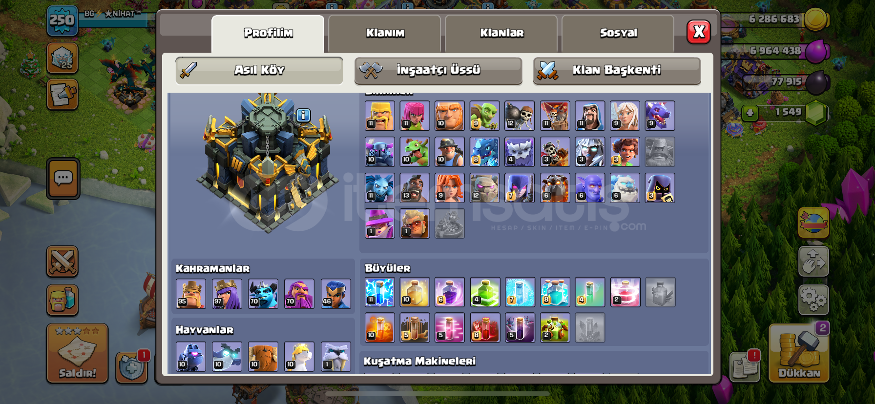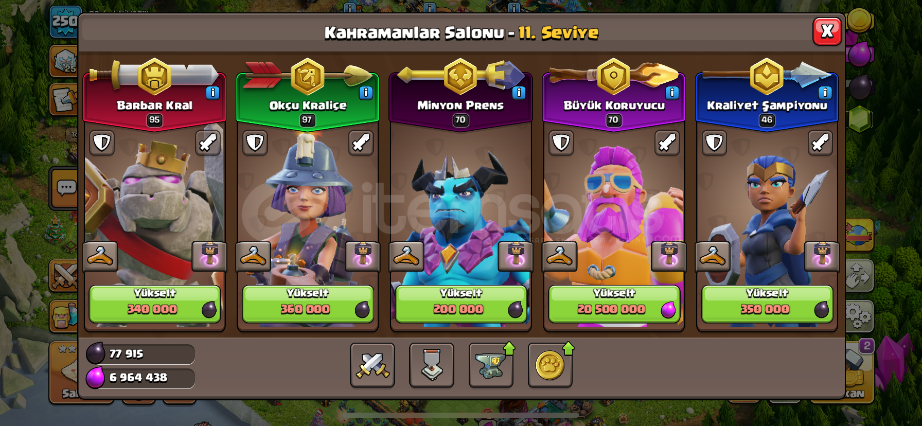 Kral 95, Kraliçe 97, Minyon Prens 70, Dede 70, Kraliyet şampiyonu 46 leveldir. Hesap koruması aktif değil numara bağlı değildir. Hesap mailiyle devredilecektir.