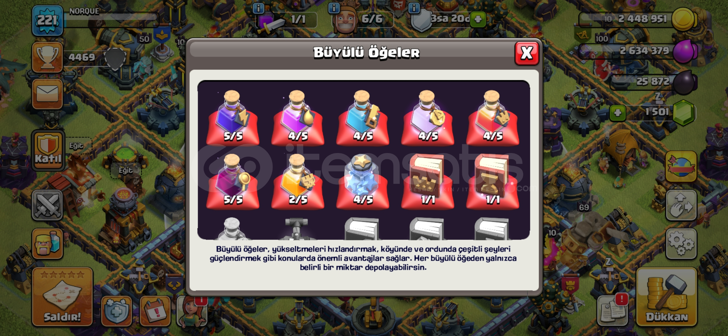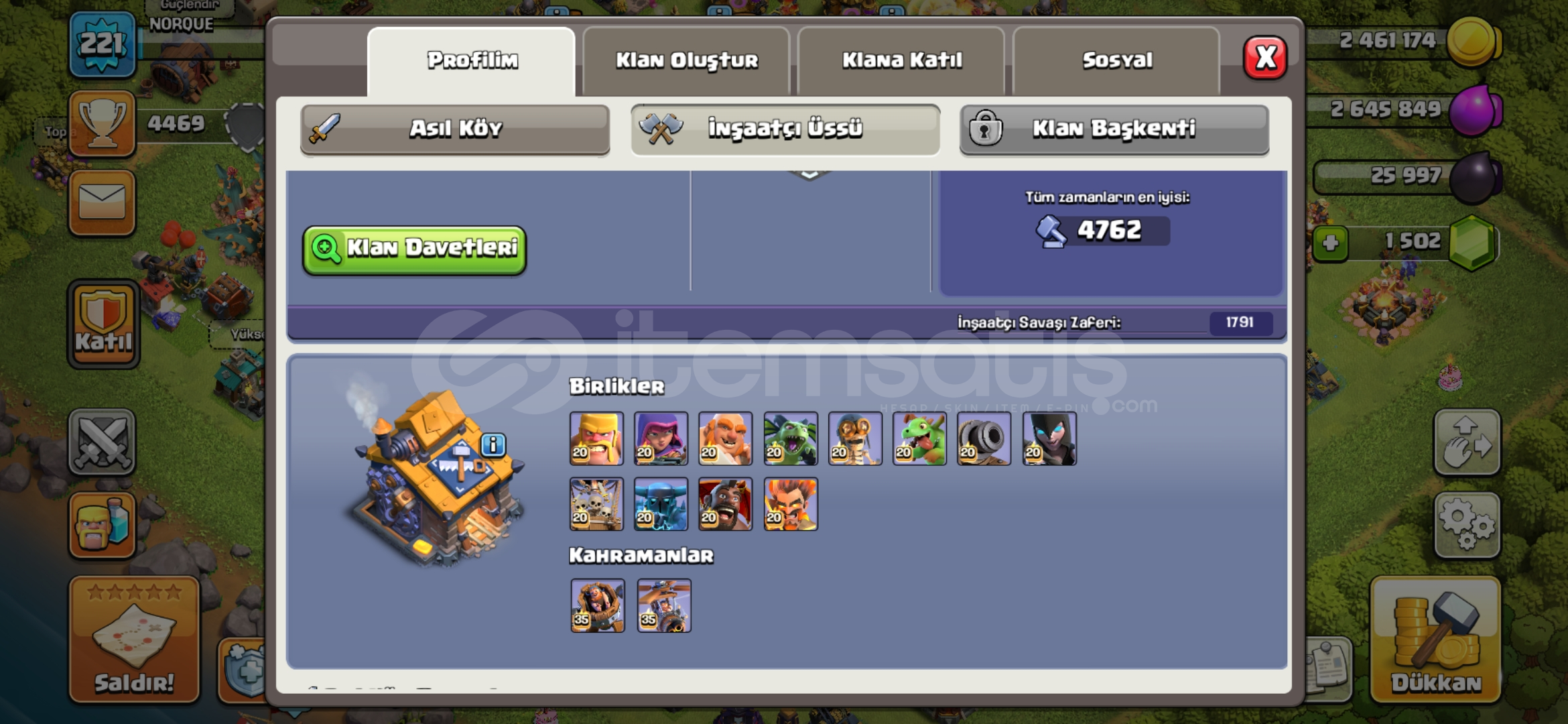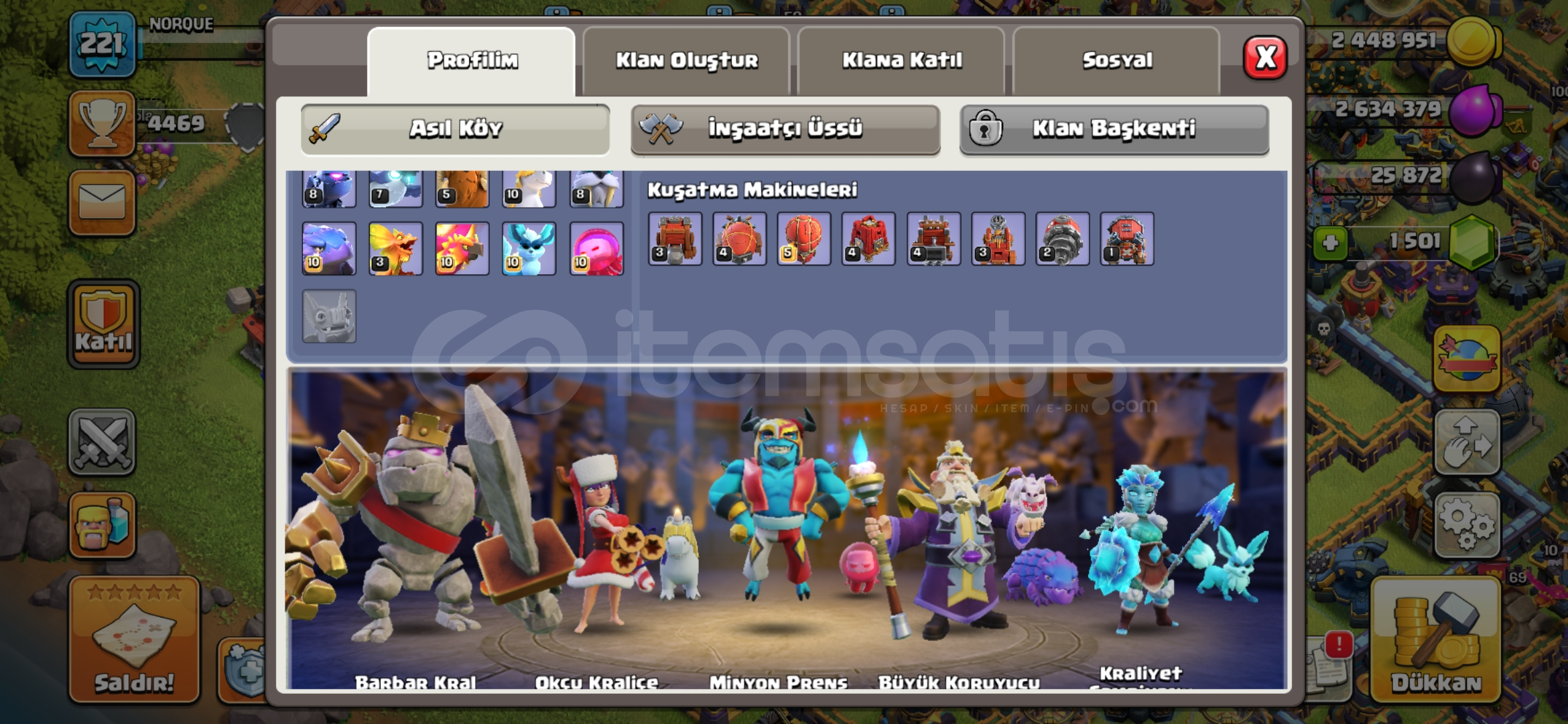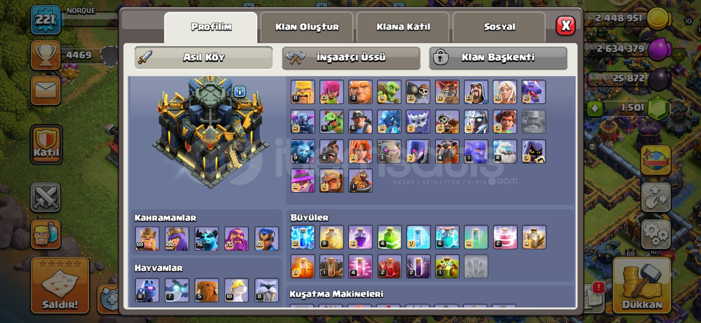 Hesapta Kraliçe, Şampiyon, Koruyucu maksimum seviyededir.1500 taş vardır.Ağır savunmaları basılmıştır.İnşaatçı köyü tamamen yükseltilmiş ve altıncı inşaatçısı bulunmaktadır.Kahramanların hepsinin kostümü, bazılarının birden fazla kostümü vardır.Kahraman ekipmanları yüksektir, özellikle alev topunun maks...