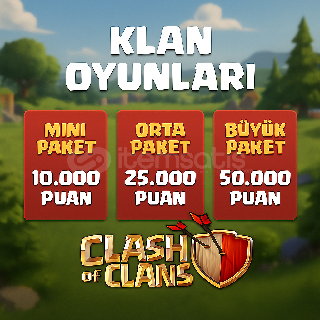 Puan kasmak için zaman harcamanıza gerek yok. Mini, Orta veya Büyük paket seçeneklerimizle klanınıza kısa sürede yüksek katkı sağlayabilirsiniz.