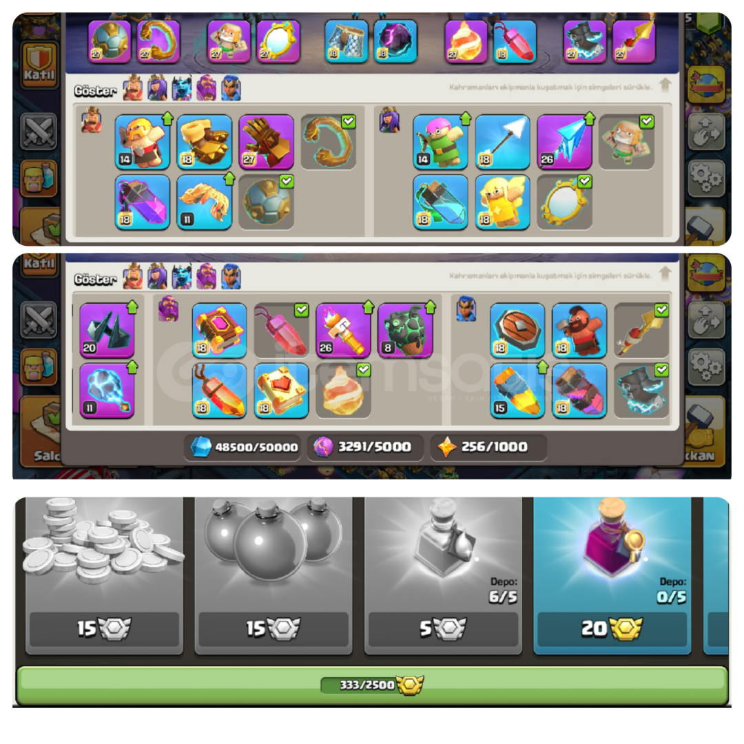 -244.SEVİYE YAN KÖY DAHİL A DAN Z YE TH18 E HAZIR MUHTEŞEM HESAP KÖYDE SON SEVİLERİ KALMIŞ 3 ADET YAYLI TUZAK YÜKSELMEDE -TÜM KAHRAMAN EKİPMANLARI EKSİKSİZDİR VE FOTOĞRAFTA GÖRÜLDÜĞÜ GİBİ META OLANLARIN TAMAMINA YAKINI MAXTIR 91.28 SEVİYESİNDEDİR EKİPMANLAR BİTMEYE YAKINDIR İSTEGE GÖRE MEVCUT CEVHERLER İLE DİGER EKİPMANLARDA MAXLANABİLİR +260 YILDIZ CEVHER MEVCUTTUR. -15 KOSTÜM 2 ARKA PLAN 2750 TAŞ 330 LİG MADALYASI TH18 E BOMBA GEÇİŞ YAPMAYA YETECEK KADAR DOLU BÜYÜLÜ ÖGELER KİTAP ÇEKİÇ RÜN SUPERCELL ID DE AKTİF EDİLMEMİŞ 1 ADET ALTIN BİLET MEVCUT İSTEDİGİNİZ ZAMAN AKTİF EDEBİLİRSİNİZ. -İSİM DEGİŞTİRME 500 TAŞ HESAP KORUMASI AKTİF EDİLMEMİŞTİR ŞAHSİ EMEK HESABIMDIR BAĞLARI TEMİZ GÖNÜL RAHATLIĞIYLA OYNAYABİLİRSİNİZ. -HESAP VERECEĞİNİZ MAİLE DEVİR EDİLECEKTİR DETAYLI BİLGİ İÇİN YAZIN.