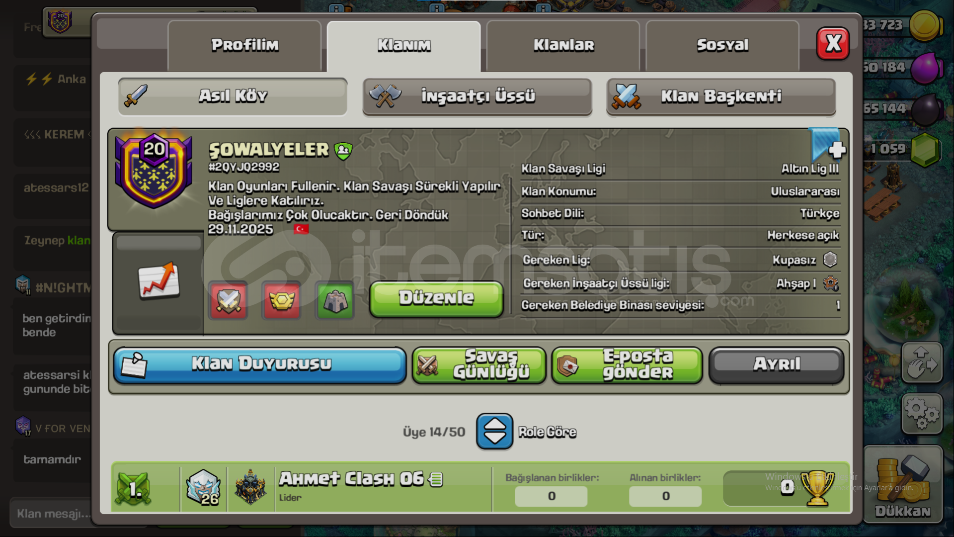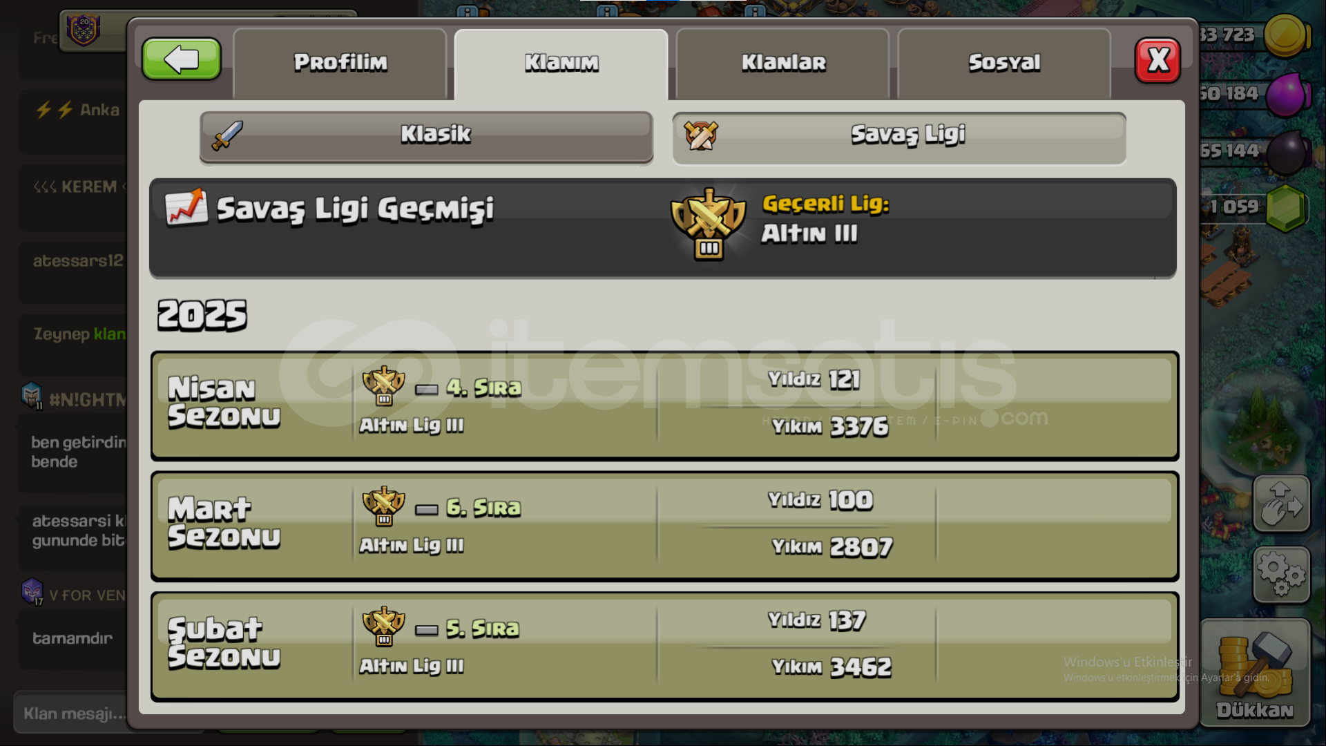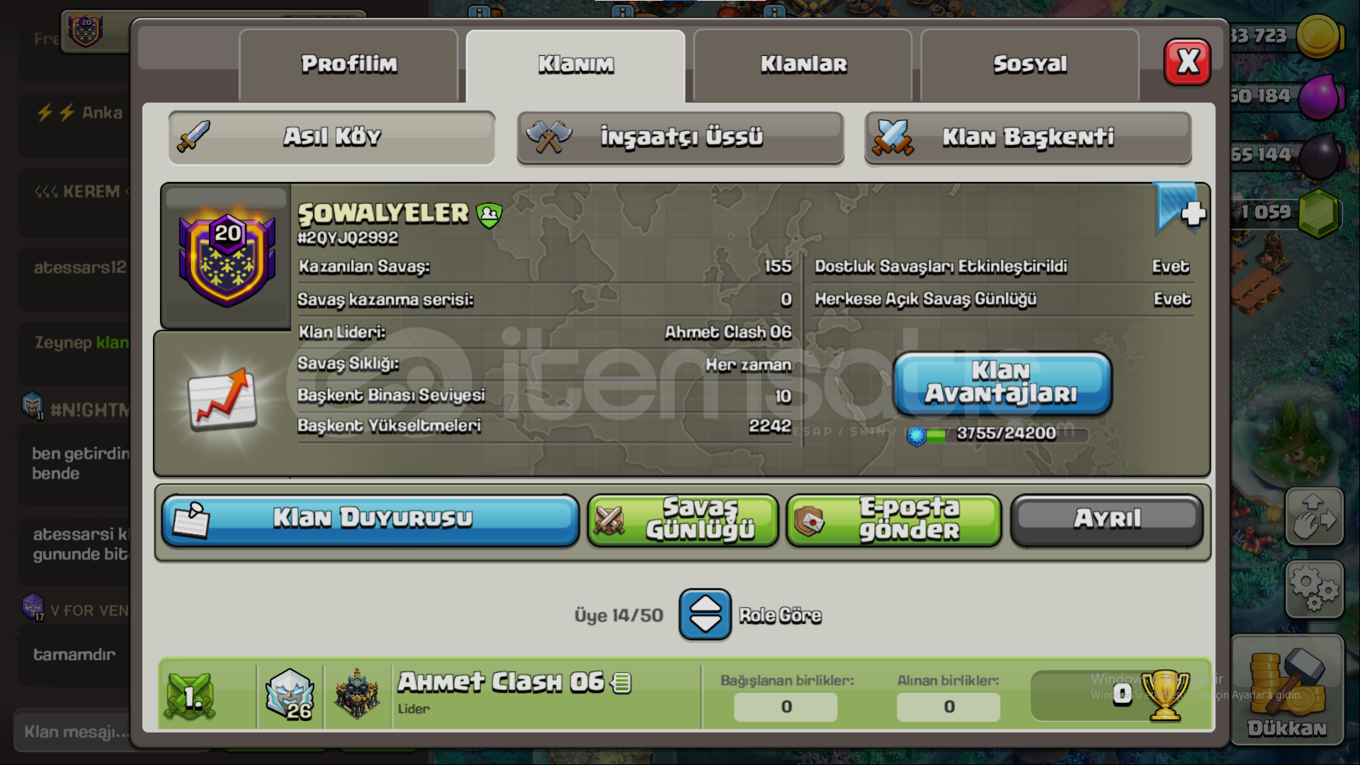 Klan 20 seviyedir ve aktiftir.Klan Diğer İlanlara Göre Satılıktır Ve Tek FiyattırAltın Lig 3tür.Teslimat&...