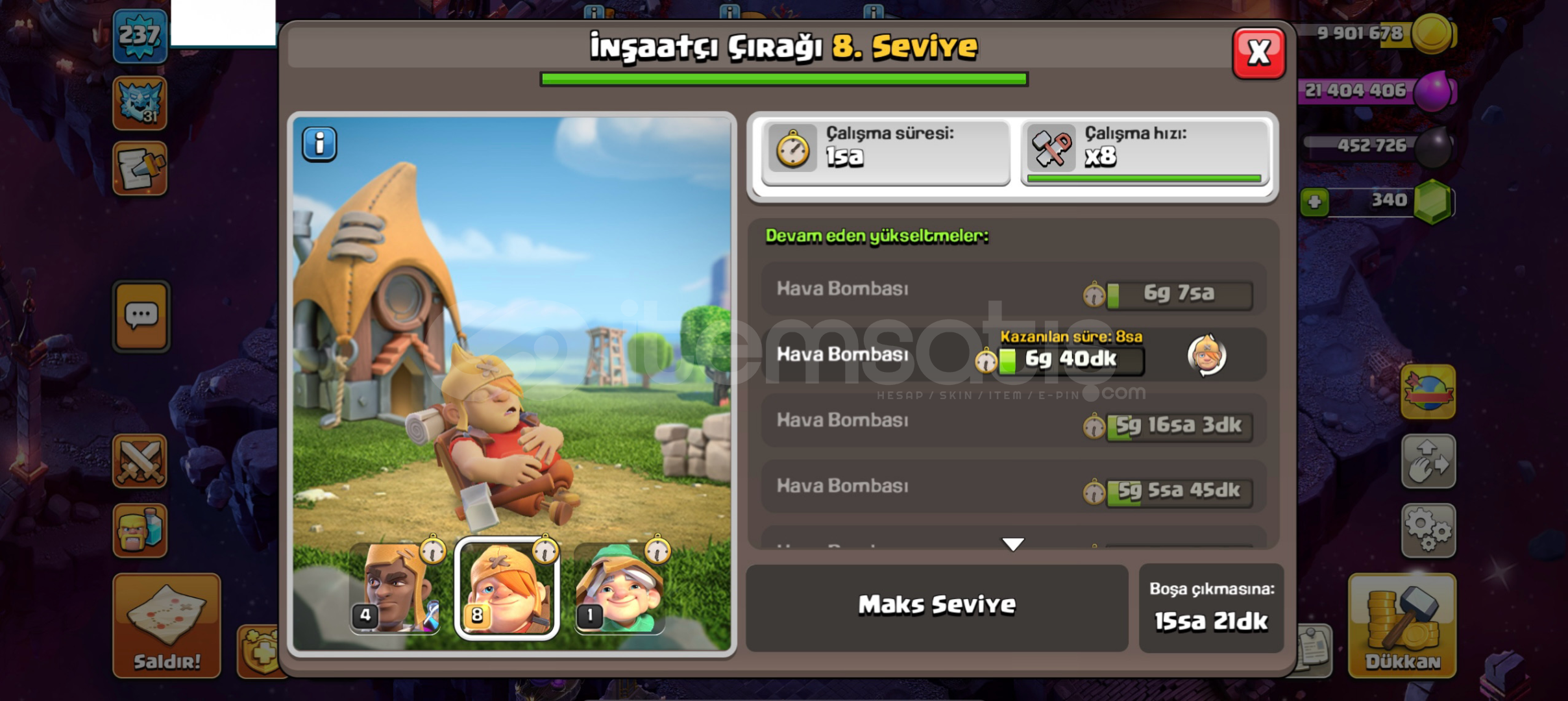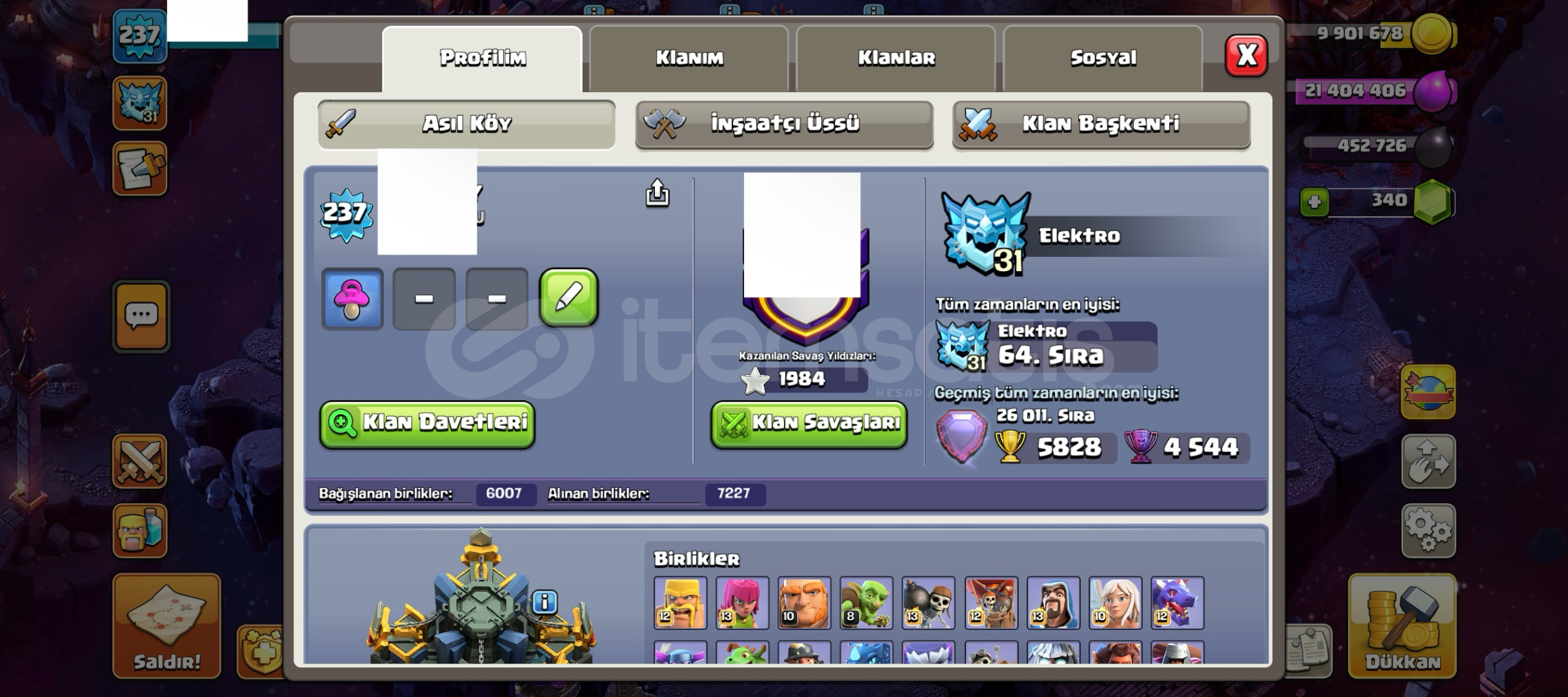Hesap güncel olarak 1984 savaş yıldızı bulunup harika bir hesaptır. Görsellerde görüldüğü üzere 2 lig kostümlü ve savaş arenası arka planlı olup köyde ufak tefek şeyler harici bitmiştir. Büyülüğü öğeleri ve storda bulunan altın biletleri ile belediye binası 18'de zorlanmayacaksınız. Dosta gidecek bir hesaptır. Pazarlık sünnettir. Alıcısına şimdiden hayırlı olsun..
