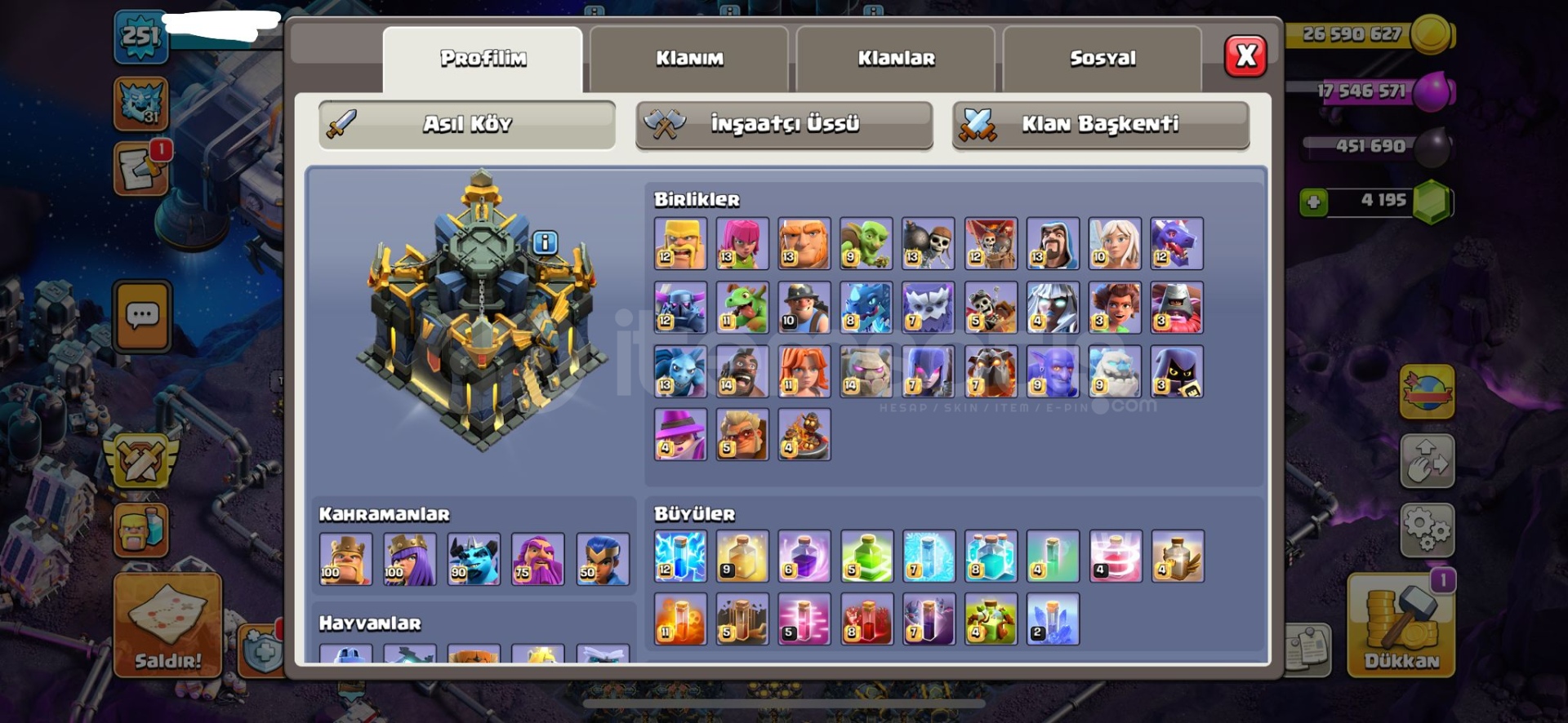 BEBEK GİBİ HESAP SATIŞTA 251 level2219 savaş yıldızı4.195 yeşil taş Şarjlara kadar max İsim Değiştirme 1000 yeşil taşGmail ve koruma değişiyor.Demircisi CLASHSPOTTA %87’dedir.DAHA FAZLA BİLGİ İÇİN MESAJ ATABİLİRSİNİZ !