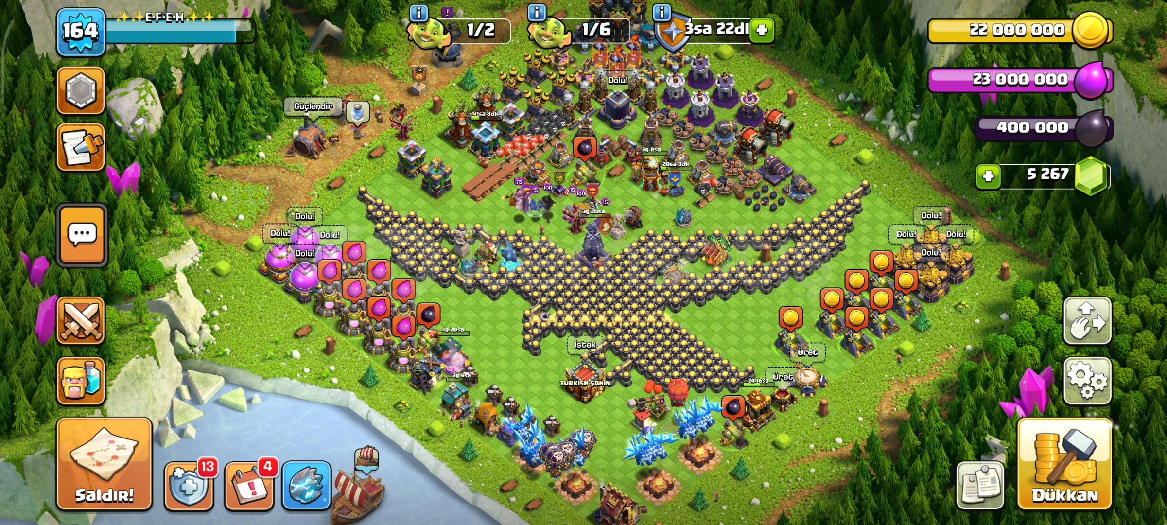 ⭐ BÜYÜK FIRSAT HESABI ⭐ TH 17 MAX DUVARLI HESAP🔥 HESABIN İÇERİĞİ;💎İSİM DEĞİŞTİRME 1000 ELMASİTİR🧱 DUVALARİ MAX+MAXTİR RESİMDE GÖRÜLDÜĞÜ GİBİ (🛡️ Duvarlar köyünüzün en önemli savunmasıdır)🎁 ÖZEL DEKORLAR VARDIR🏆600+ LİG MADALYASI🏆4500+ BASKNET MADALYAS...