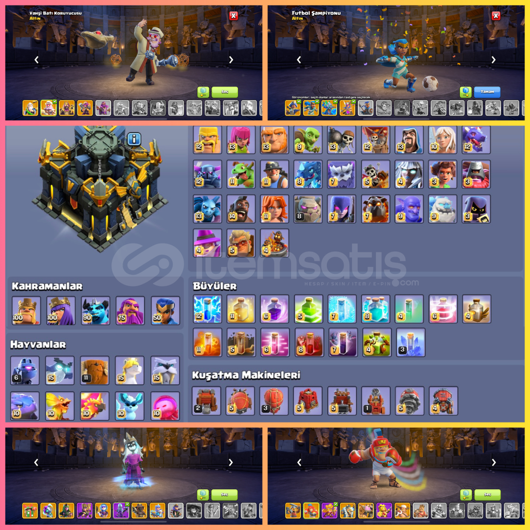 +50 SATIŞ GÜVENCESİ VE YÜZLERCE MÜŞTERİMİZİN MEMNUNİYETİNİ BELİRTTİĞİ YORUMLARIYLA SİZLERE EN GÜVENLİ ŞEKİLDE EN İYİ CLASH OF CLANS HESAPLARINI SUNUYORUZ.