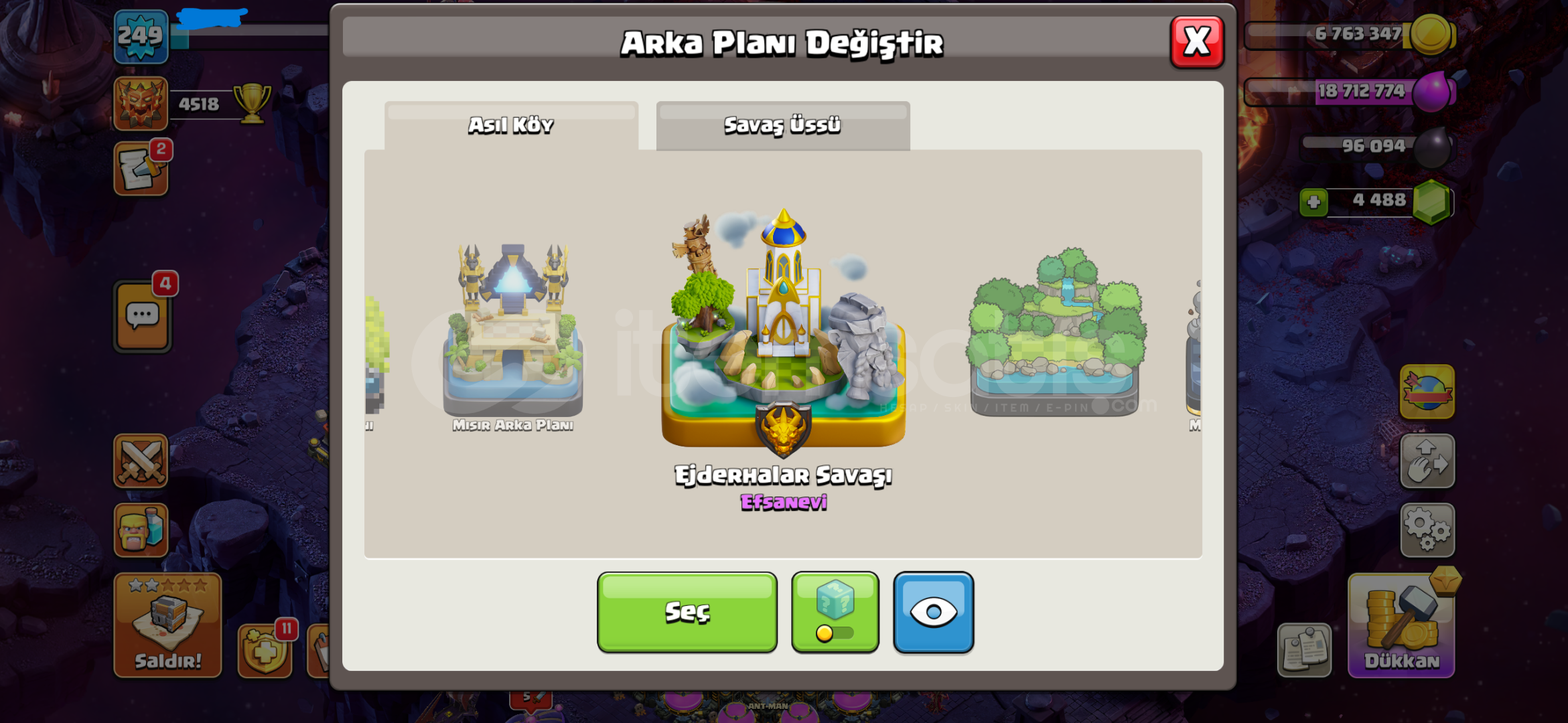 Ejderha arka planı dahil bir çok arka plan ve skin var