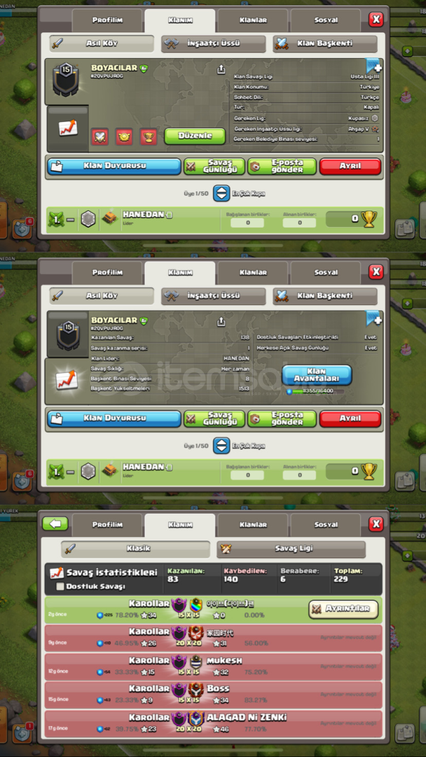 MÜKEMMEL İSİMLİ 15 SEVİYE KLAN SATILIKTIR