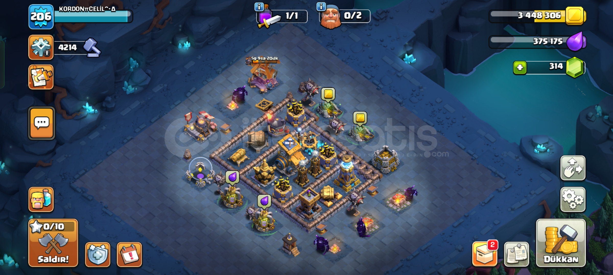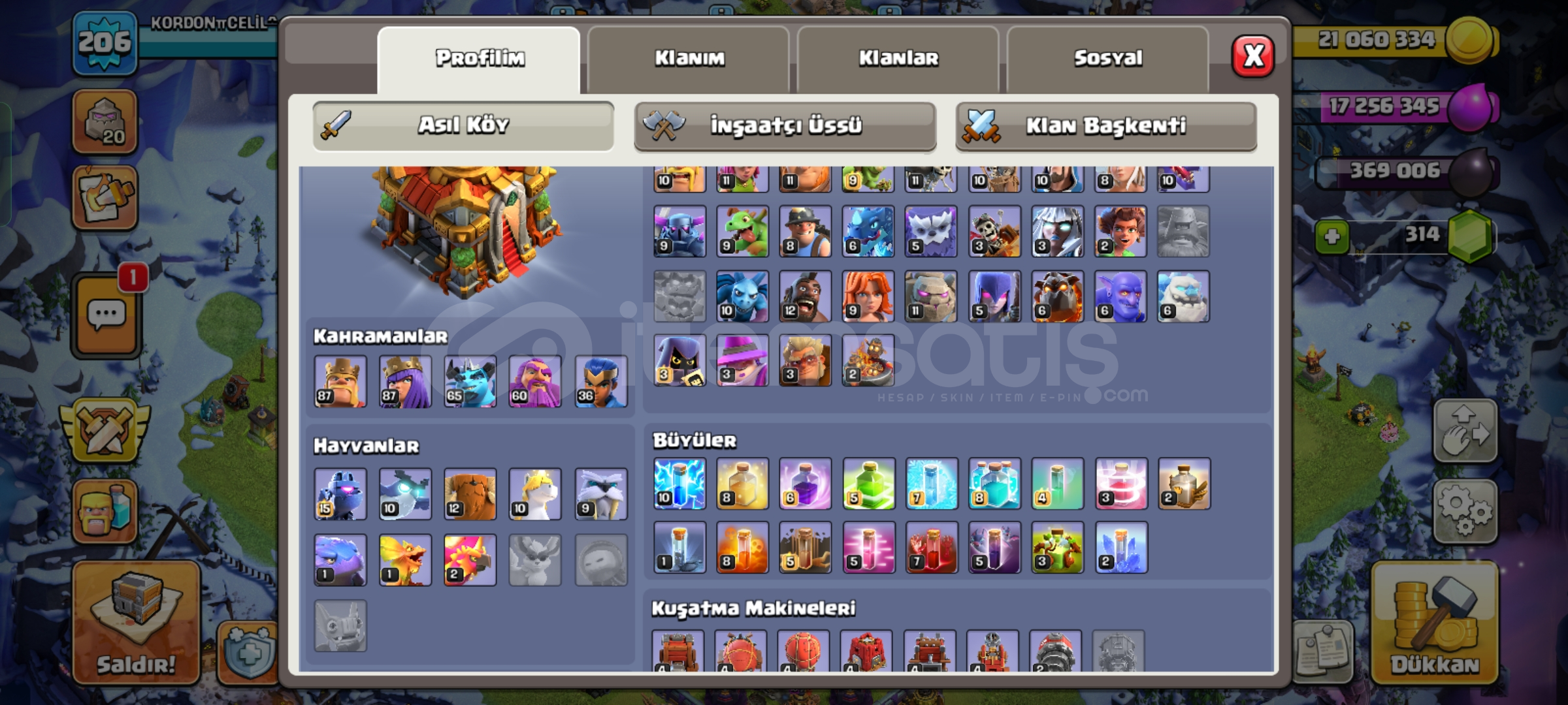 1)İnşaatçı üssü max.2)klan başkenti 95 Level.3)isim değiştirme hakkı var.4)İlk sahibi ve ilk ...
