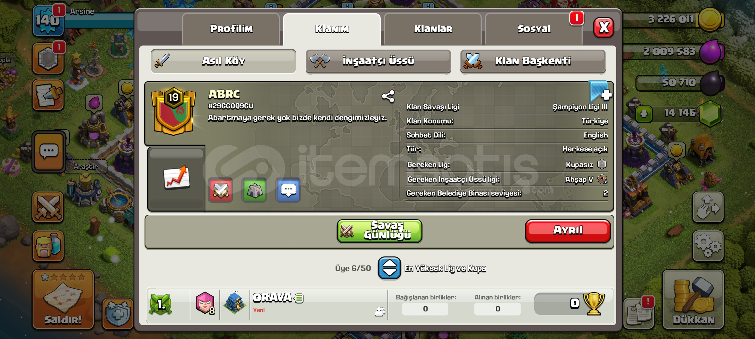 Şampiyon ligli Bu fiyatta böyle bir klan yok
