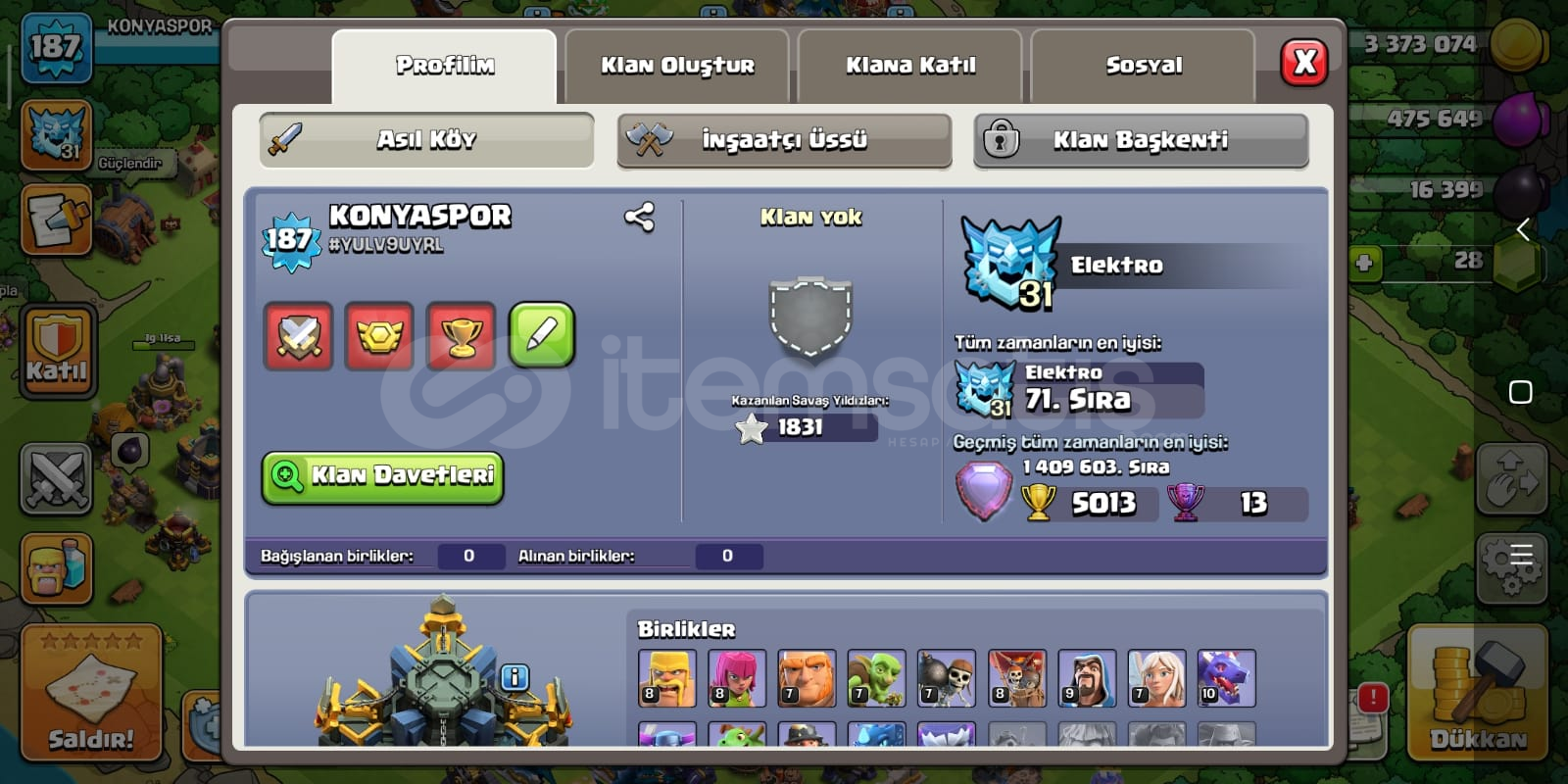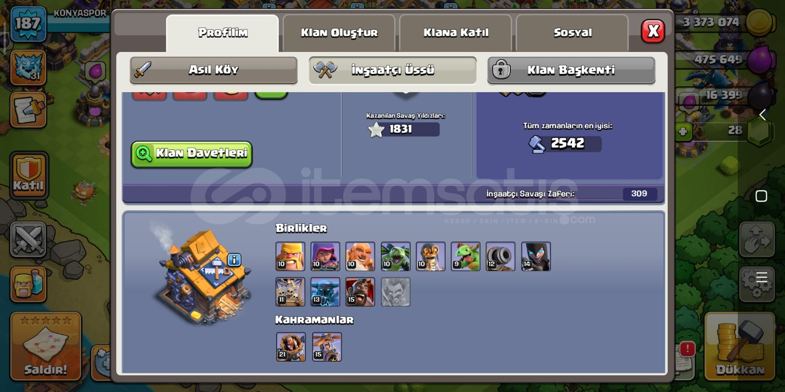 *187 Level*5 İnşaatçı*Geri kalan herşey resimlerdeki gibidir.*Otomatik teslimat güvencesi.
