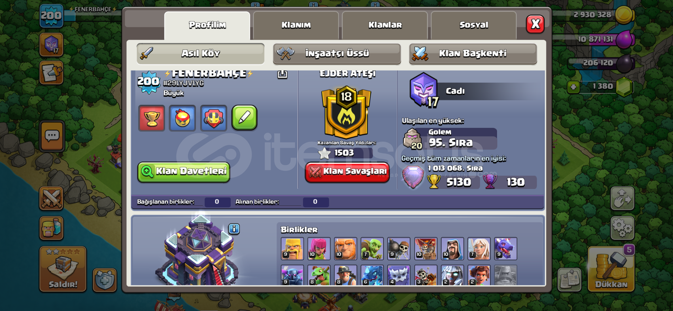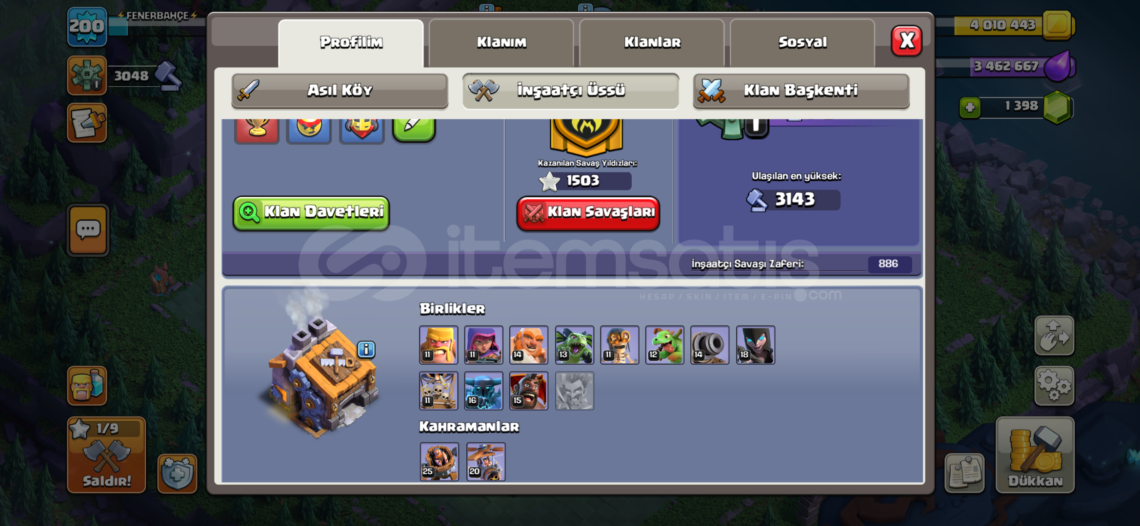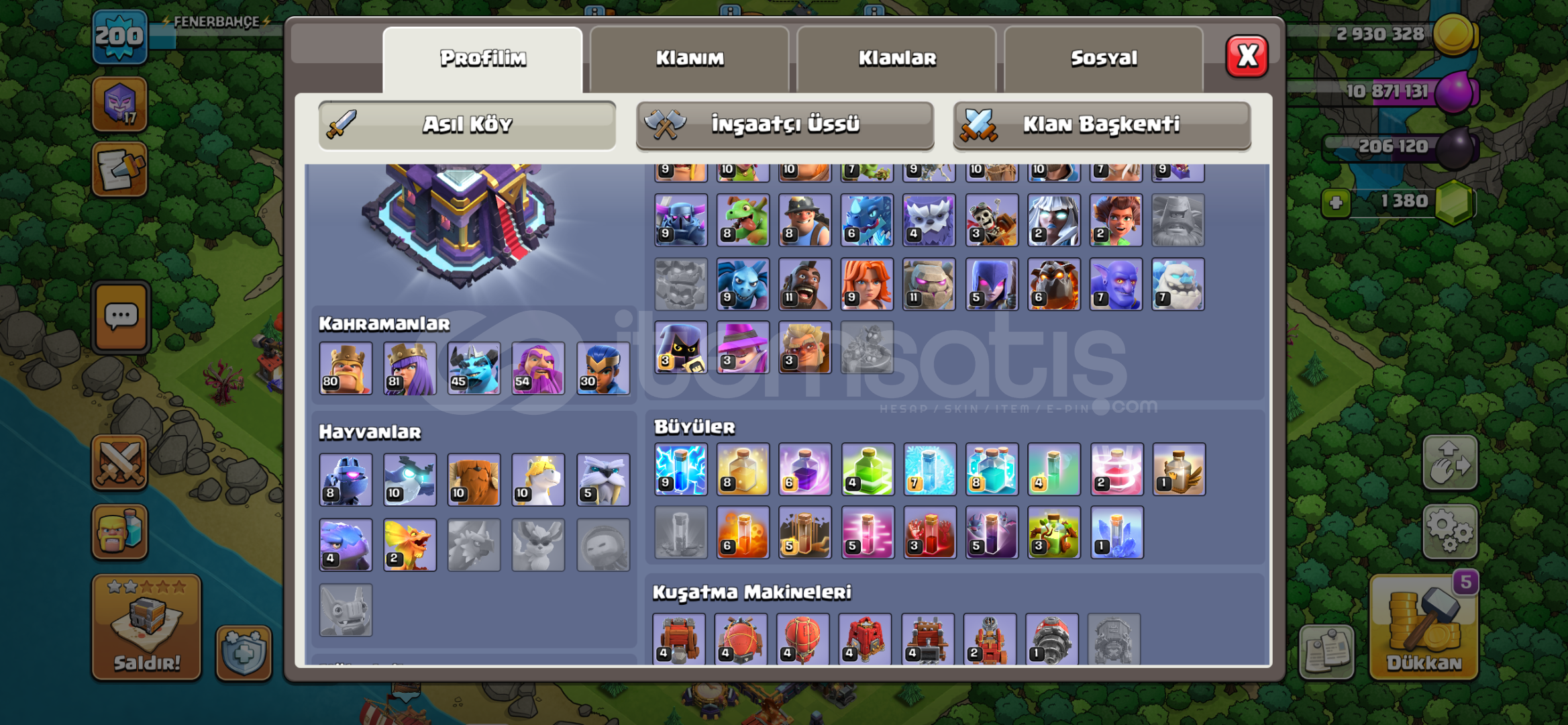 (200)seviye beldiye 15 satılık coc hesabı