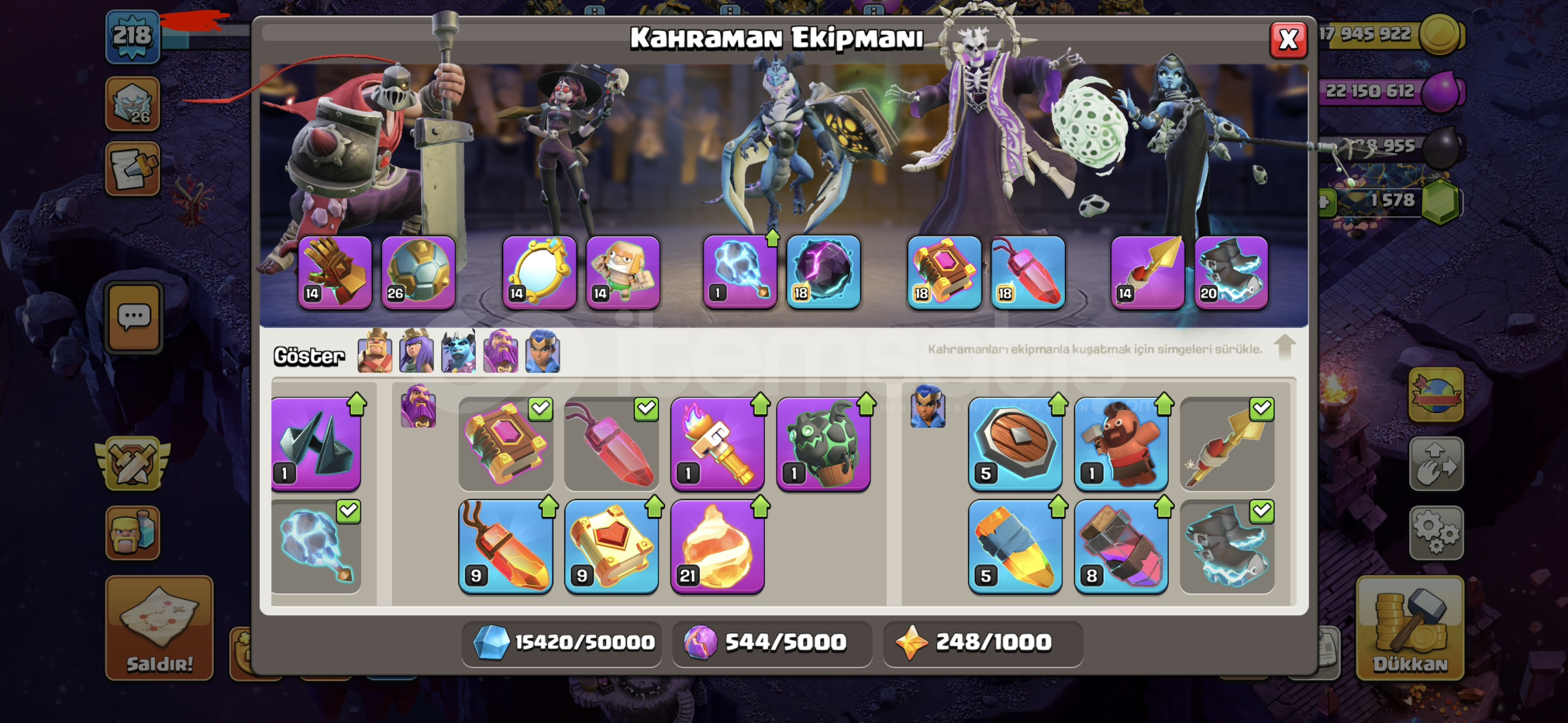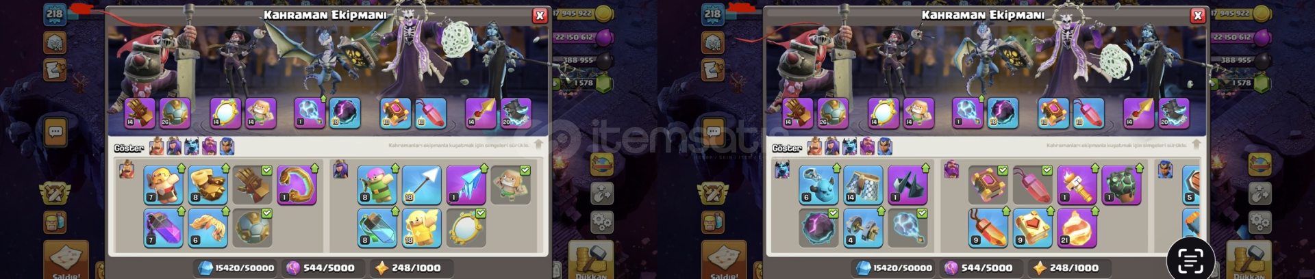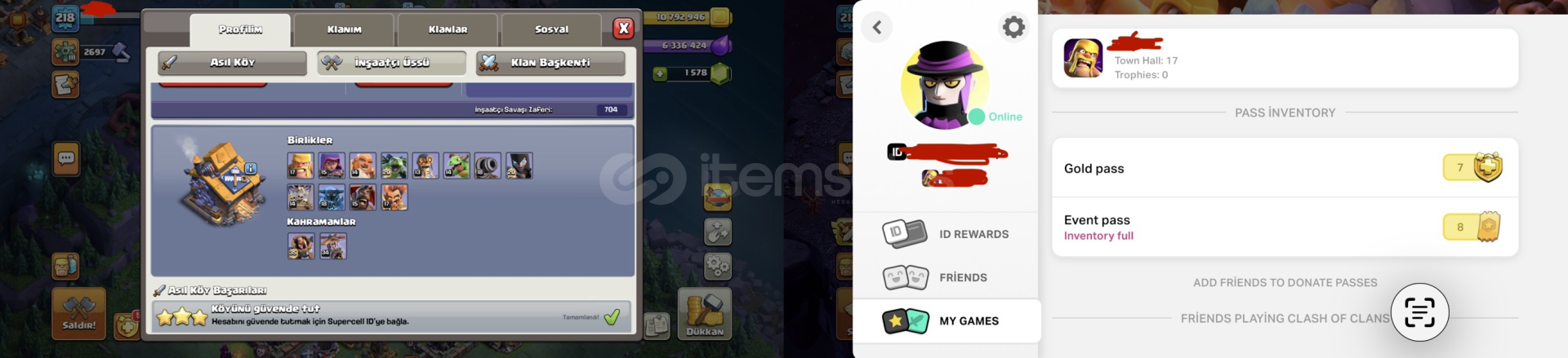 TUZAK DIŞI SAVUNMALAR %90 MAXTIR7 ALTIN BİLET8 ETKİNLİK BİLETİ ENVANTERDE VARDIRDEMİRCİ VE HEROLAR SAĞLAMDIRUCUZA SATILMAKTADIR1500+ ELMAS VARDIR!! HESAPLA ALAKALI SORUNUZ VARSA YAZABİLİRSİNİZ !!