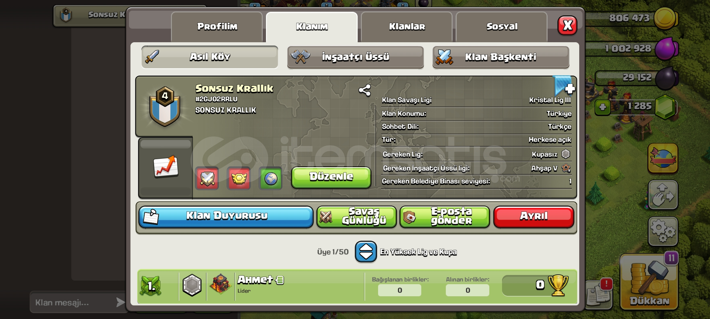 SONSUZ KRALLIK İsimli Türkçe Klan+Kristal 3 Ligi'nde+Başkent Seviyesi 3+5 Seviye Olmasına Az Kalmış HEMEN TESLİM EDİLİR ALANA HAYIRLI OLSUN