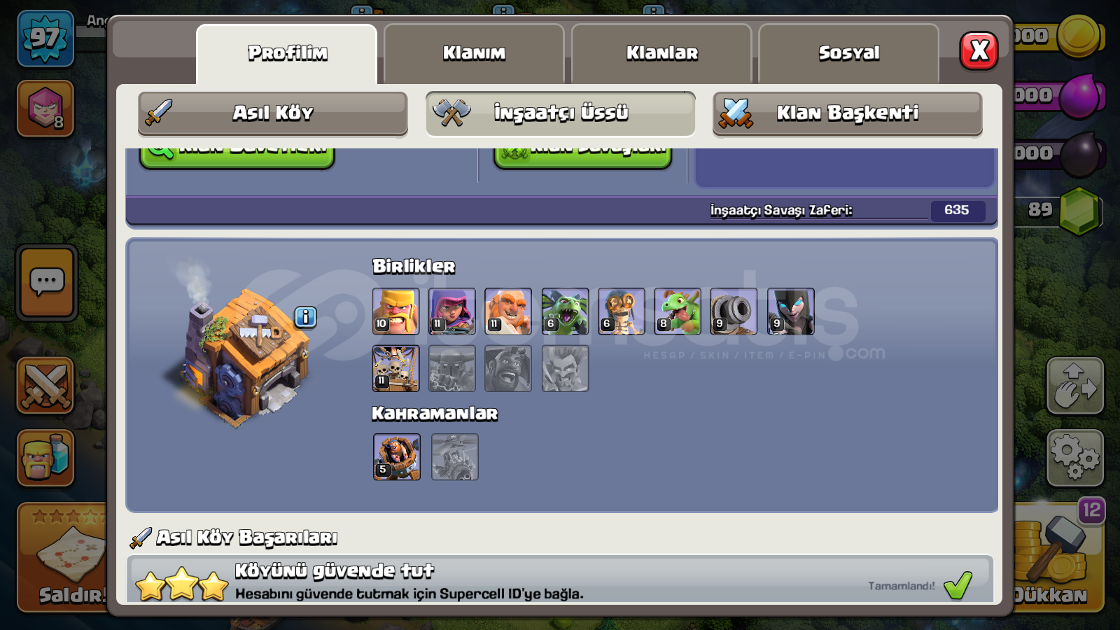 • Supercell, bazı kod kaynaklı sorunları küresel çapta yaşamakta olup, bu durum satıcı ile ilgili değildir. Hesabınıza sizin dışınızda kimsenin erişimi bulunmamaktadır. Hesap teslimatı sırasında oturumlardan çıkış yapılacak ve ilk satın alma anında başka bir giriş yapılmıyorsa, çoklu giriş yapılması durumunda iade veya değişim talebi kabul edilmeyecektir.
