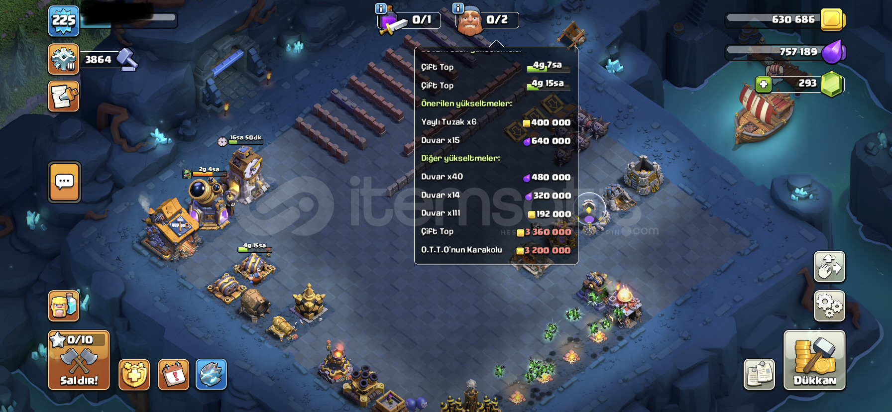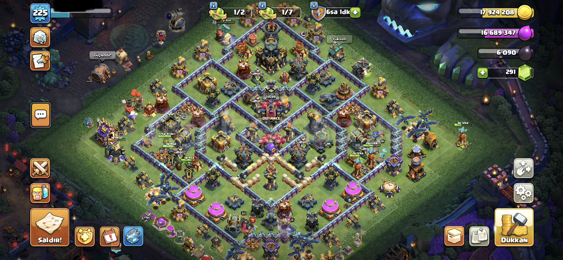 🟢 Ana köy: %90 max — yalnızca 1-2 seviye eksik bina / büyü / kahraman mevcut