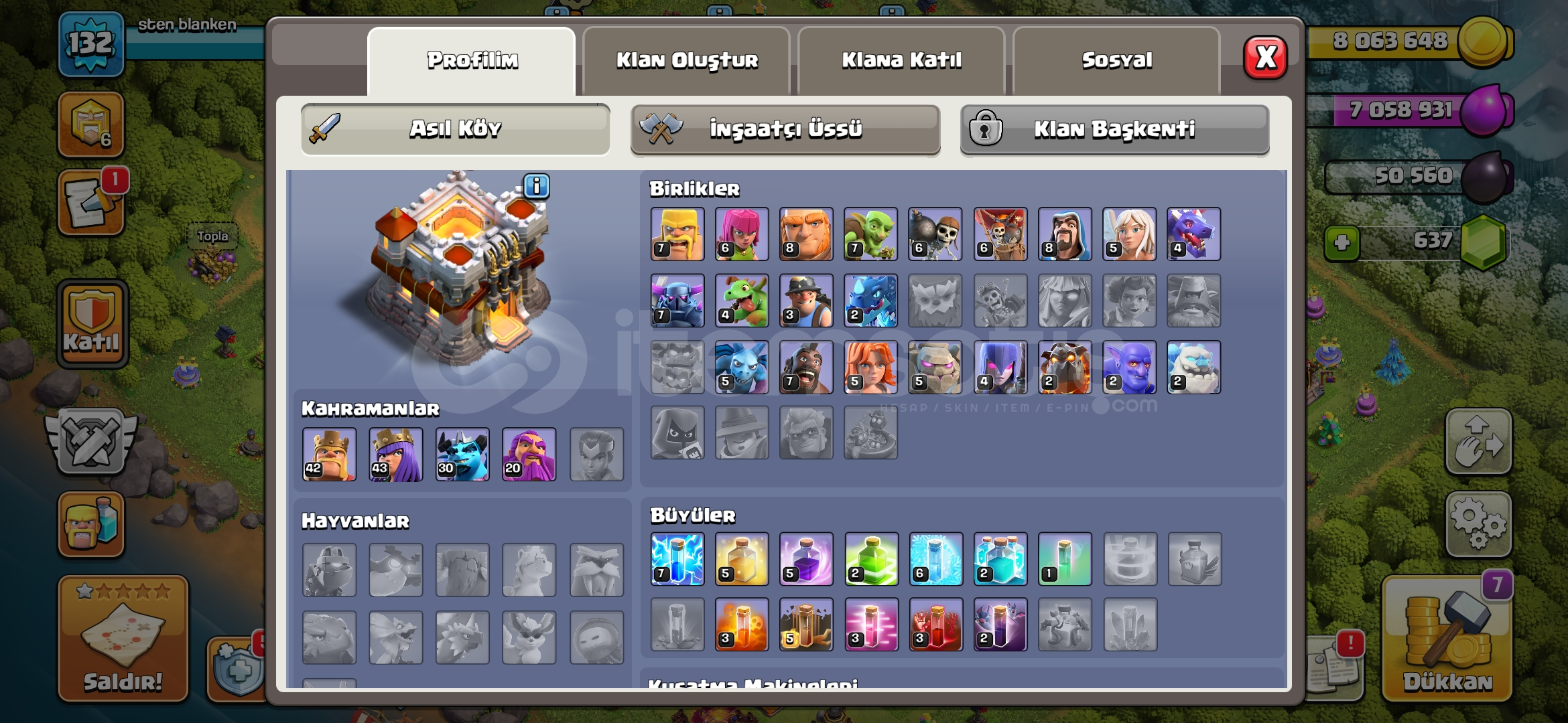 🥇Hesabımız Th 11 Dir🥇Hesap 132 Seviyedir🥇637 Taş Mevcutur (150 Tl Değerinde)🥇1 Tane Özel Kostüm Mevcutur🥇5 Tane İnşaatçı kulübesi Mevcutur🔥 İnşaatçı Binası 6 Seviyedir🔥Alıcısına Hayırlı Olsun🥇Hesap Supercell Id ye Bağlıdır Koruma Yoktur Mail Teslimdir (Otomatik Teslimat)