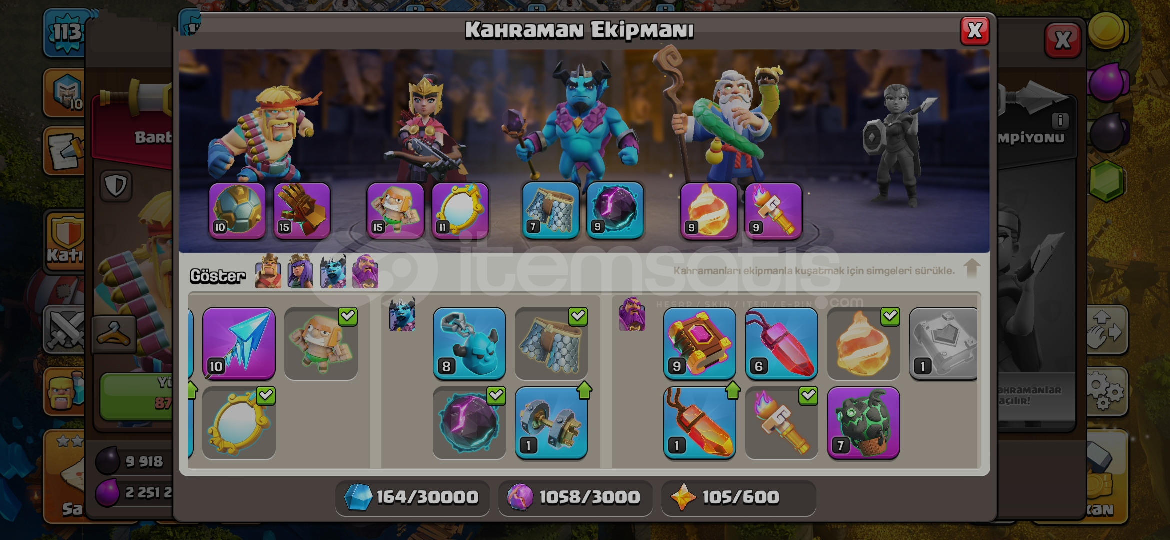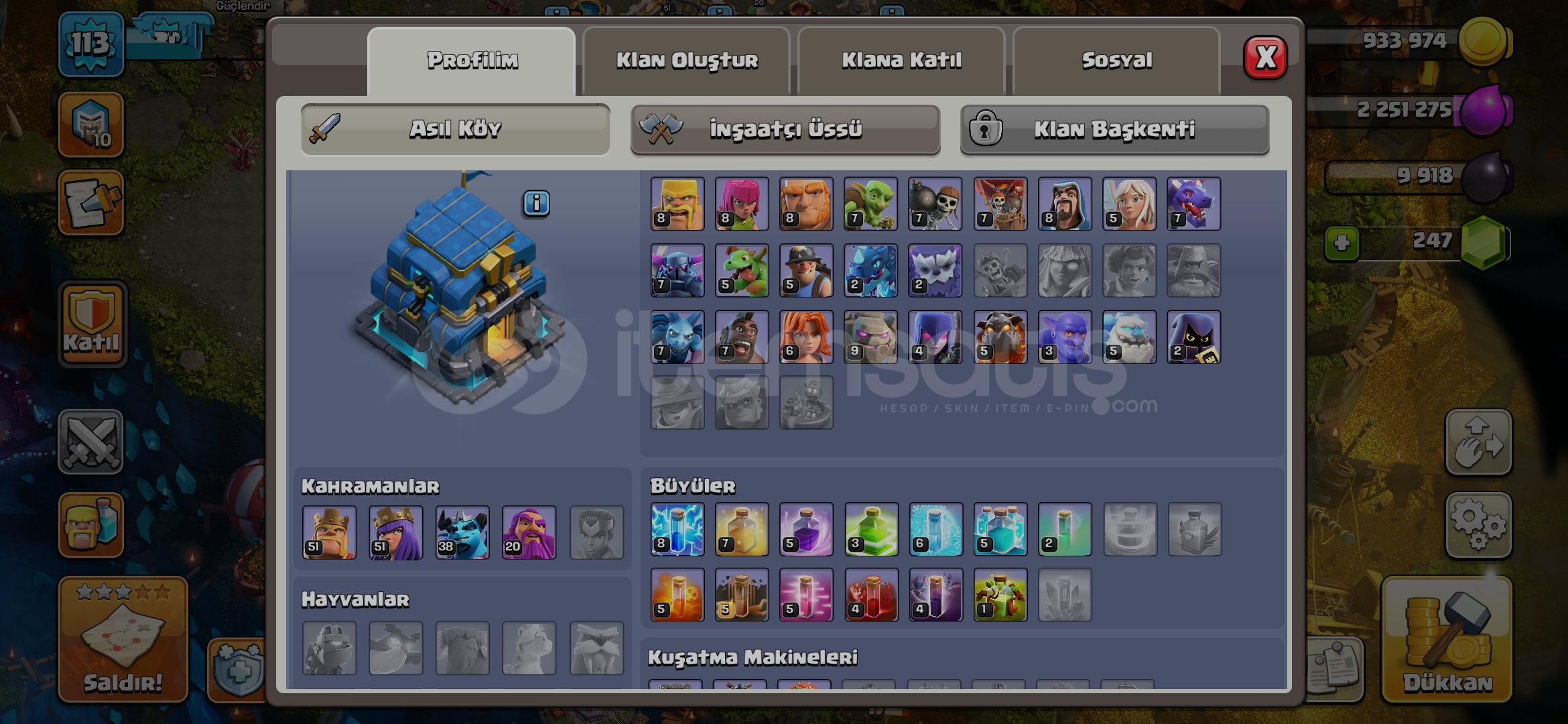 2 adet arka plan bulunmaktadır Efsanevi ve Altın kostümler bulunmaktadır 113 level Büyücü 10 LigindeYan köy de kahramanı 8 kere basarsanız 6. İnşaatçıyı alabilirsiniz diğer görevleri ben yaptım Hesap sizin mailinize bağlanacaktır