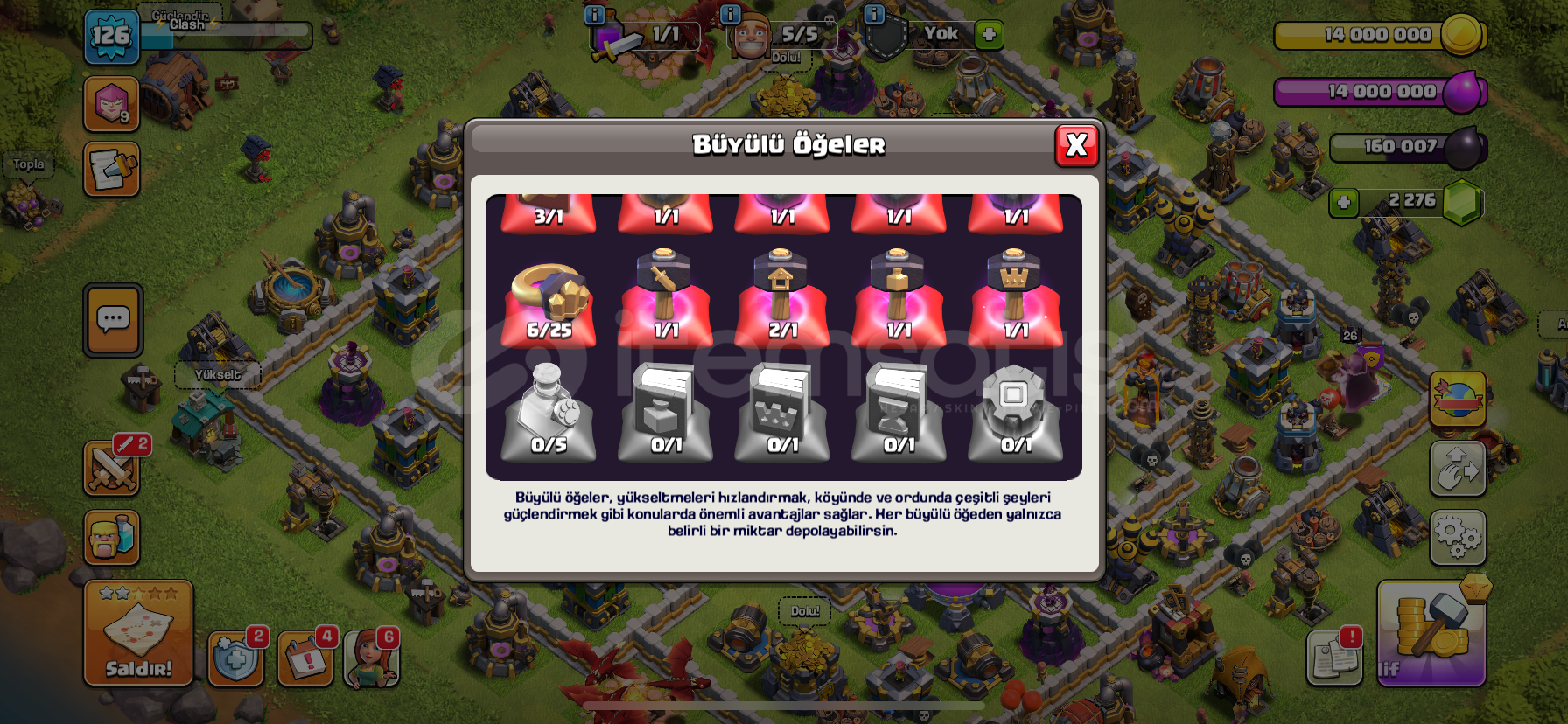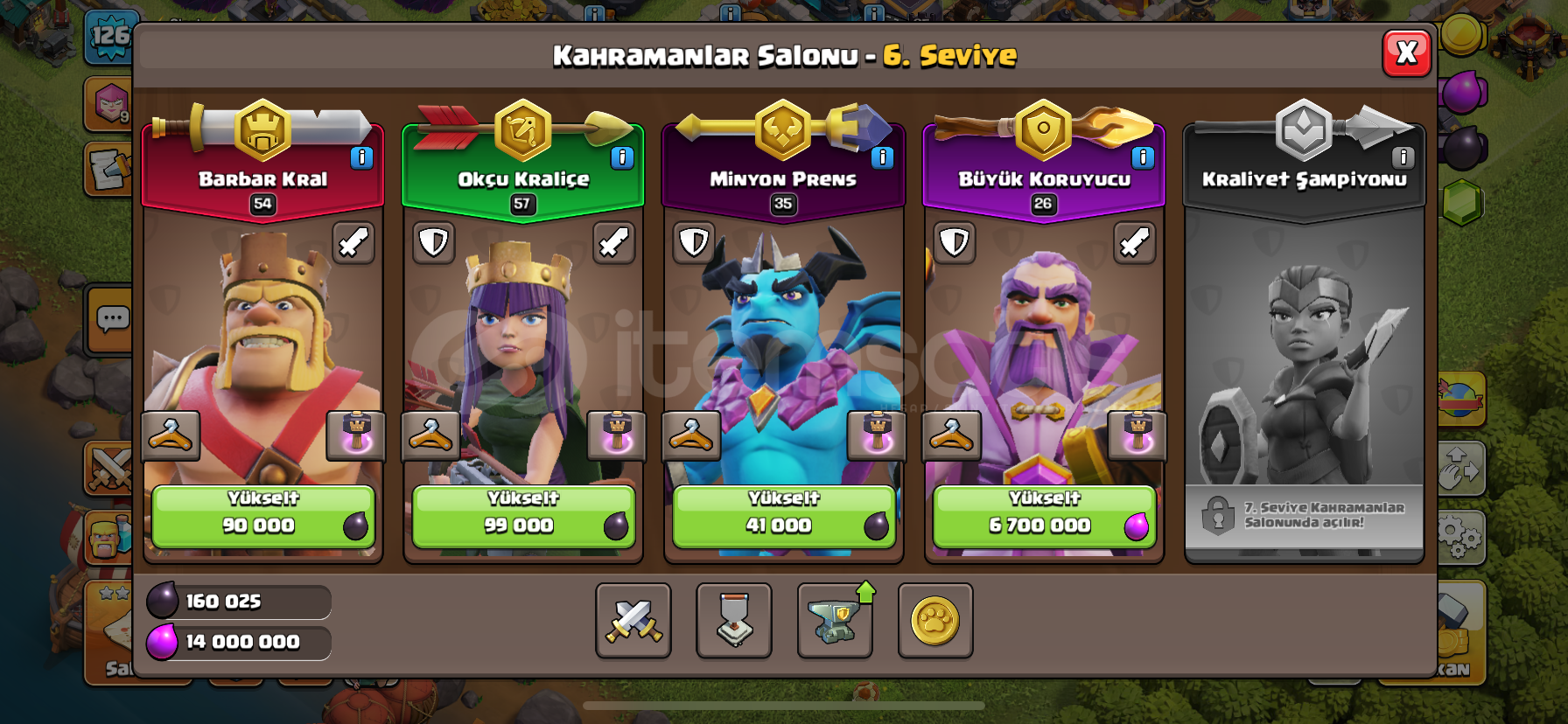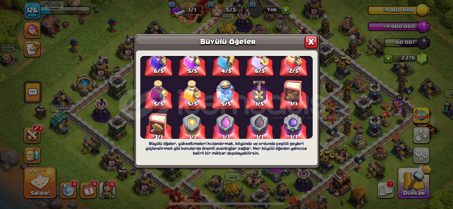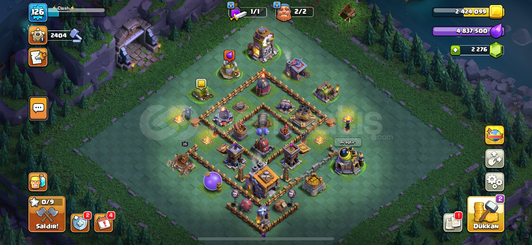 Sadece duvarlar ve bombalar kaldı kahramanlar nerdeyse max 1-2 seviyesi kaldı 2000 taştan fazla var kralın ve kraliçenin kostümü var bütün büyü öğeler var inşaat çekicinden 4 tane var