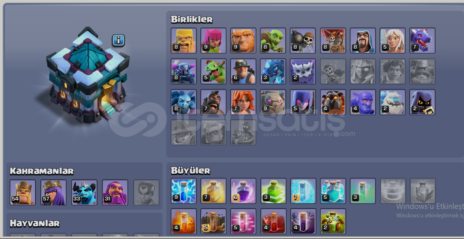 TH 13 E RAMAK KALMIŞ HESAPTIRDUVARLARI MAXHEROLARI AZ KALMIŞTIRBİRLİKLER VE SAVUNMALAR DA AZ KALMIŞTIRKISA SÜREDE BB 14 E GEÇMEYE HAZIR HESAP673 KS YILDIZI VARDIR124 LEVELDİR3 K TAŞ MEVCUTTUR500 TAŞA İSİM DEĞİŞİR119 TL LİK PASS İNDİRİMİ VARDIR İLK OLDUĞU İÇİNMAİL İLE TESLİM EDİLECEKTİRTELEFON NUMARASI BAĞLI DEĞİLDİRHESA...