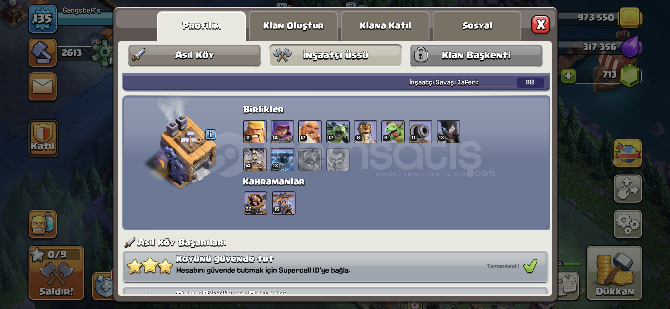 PAZARLIK YAPILIR. BB 13 Hesabımızın hero lvlleri birlik lvlleri yüksektir sitenin en iyi en ucuz hesabıdıR !!!Hesabımızı satın alırken terettüt etmeyniz 2019 kurulmlu türk hesabıdır tamamen üzerinze devir edilecektir6.İNŞAATCİ ÇOK AZ KALMIŞTIR.700 TAŞ !!500 TAŞ İLE İSİM DEĞİŞTRME ŞANSI !!3 ADET EFSANE KOSTÜM 800 TL DEĞERNDE !!80 Lİ...