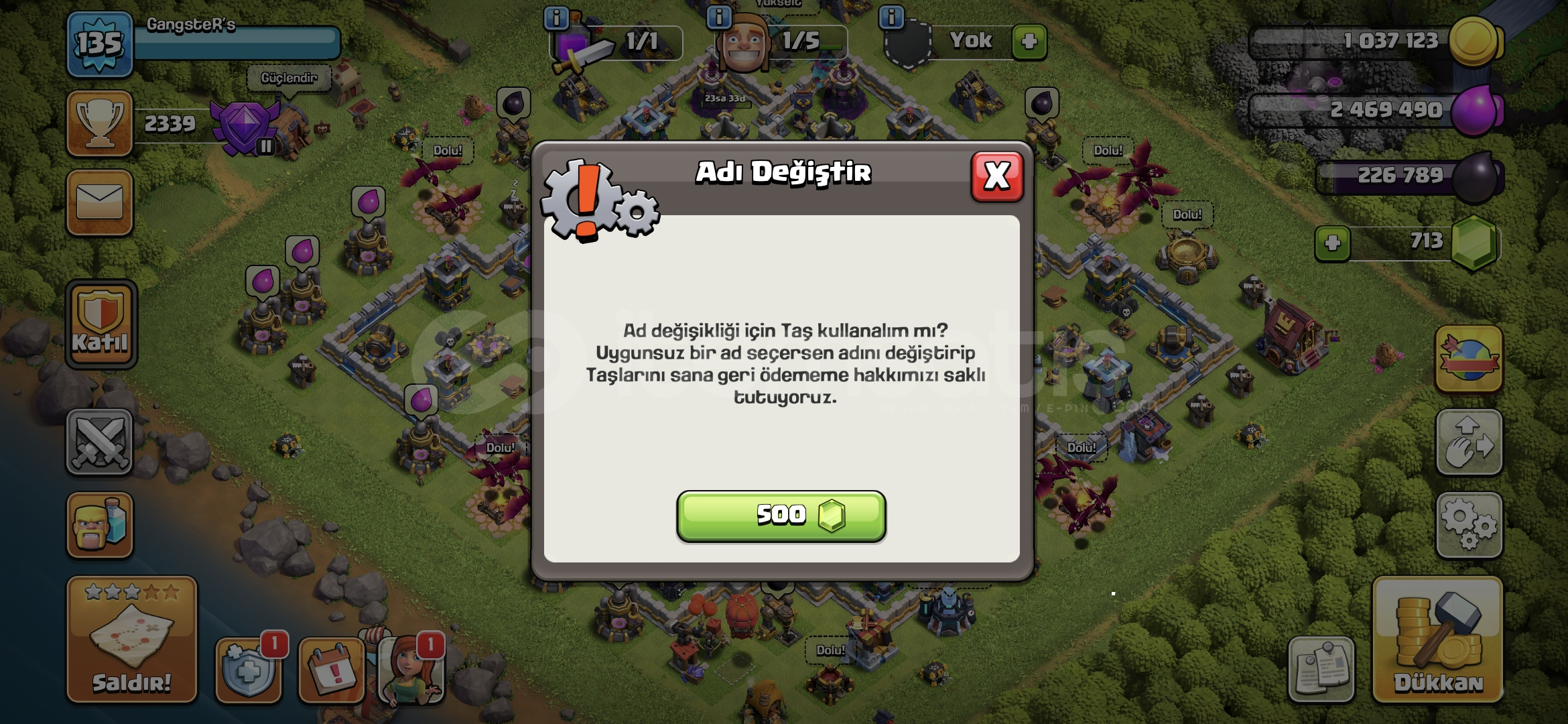 500 TAŞ İLE İSİM DEĞİŞTRME ŞANSI !!