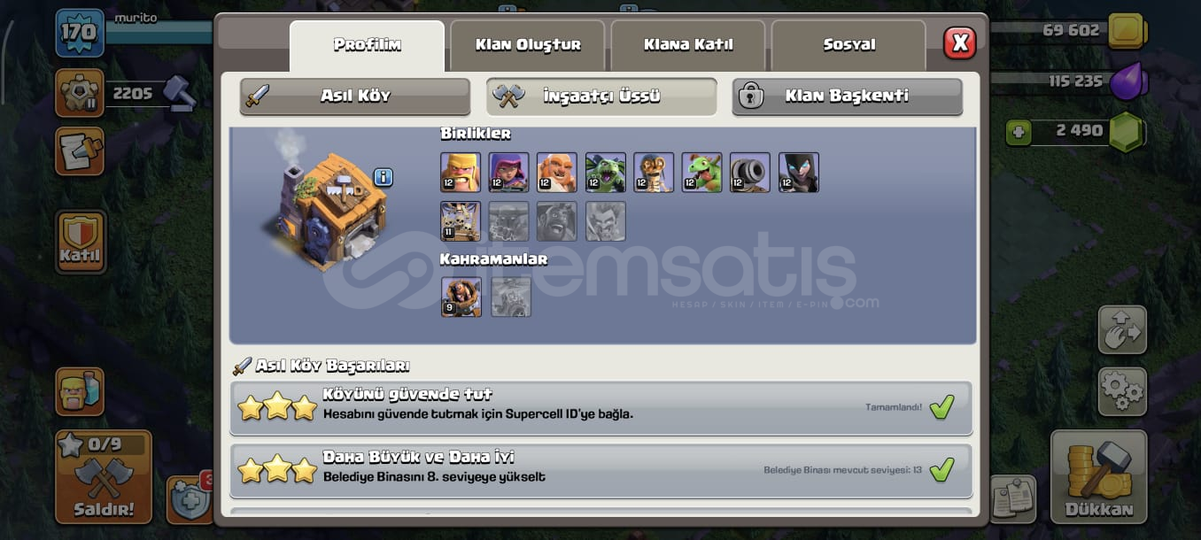 Hesaba detaylıca bakmak için: #222UY8P00Hesaplar asla geri çekilmez!Hesap koruması aktif değildir!Yeni güncelleme sebebiyle sezon geçişlerinde CLASH ROYALE HESAPLARINDA kupa kaybı yaşanabiliyor bilginize.Sipariş Sonrasında oluşacak sonular için kalıcı destek!"Neden beni tercih etmelisiniz?"+660 Başarılı işlem.Yüksek müşteri memnuniyeti.Supercell oyunu içinde 500+ Faz...