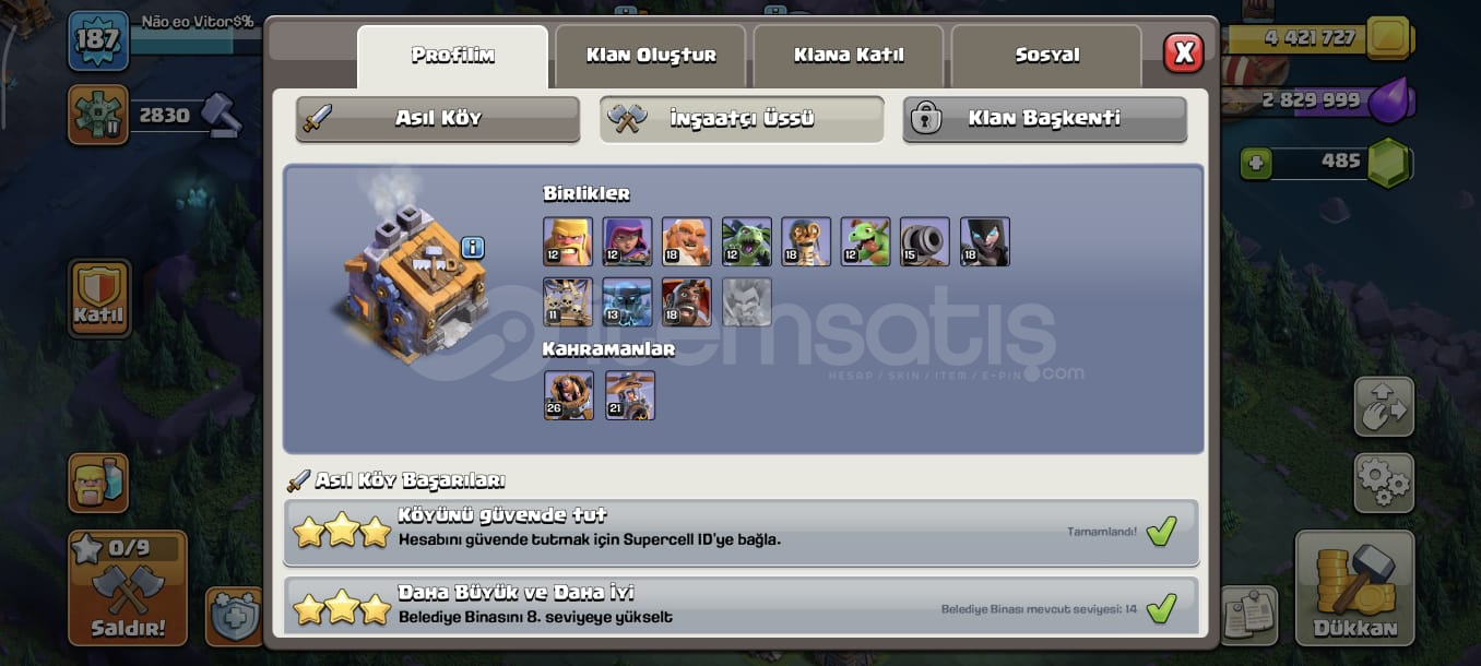 Hesaba detaylıca bakmak için: #98JLPGGLVHesaplar asla geri çekilmez!Hesap koruması aktif değildir!Yeni güncelleme sebebiyle sezon geçişlerinde CLASH ROYALE HESAPLARINDA kupa kaybı yaşanabiliyor bilginize.Sipariş Sonrasında oluşacak sonular için kalıcı destek!"Neden beni tercih etmelisiniz?"+660 Başarılı işlem.Yüksek müşteri memnuniyeti.Supercell oyunu içinde 500+ Faz...
