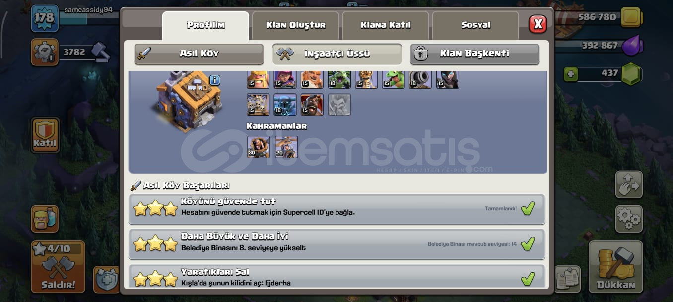Hesaba detaylıca bakmak için: #9CPYRUCRRHesaplar asla geri çekilmez!Hesap koruması aktif değildir!Yeni güncelleme sebebiyle sezon geçişlerinde CLASH ROYALE HESAPLARINDA kupa kaybı yaşanabiliyor bilginize.Sipariş Sonrasında oluşacak sonular için kalıcı destek!"Neden beni tercih etmelisiniz?"+660 Başarılı işlem.Yüksek müşteri memnuniyeti.Supercell oyunu içinde 500+ Faz...
