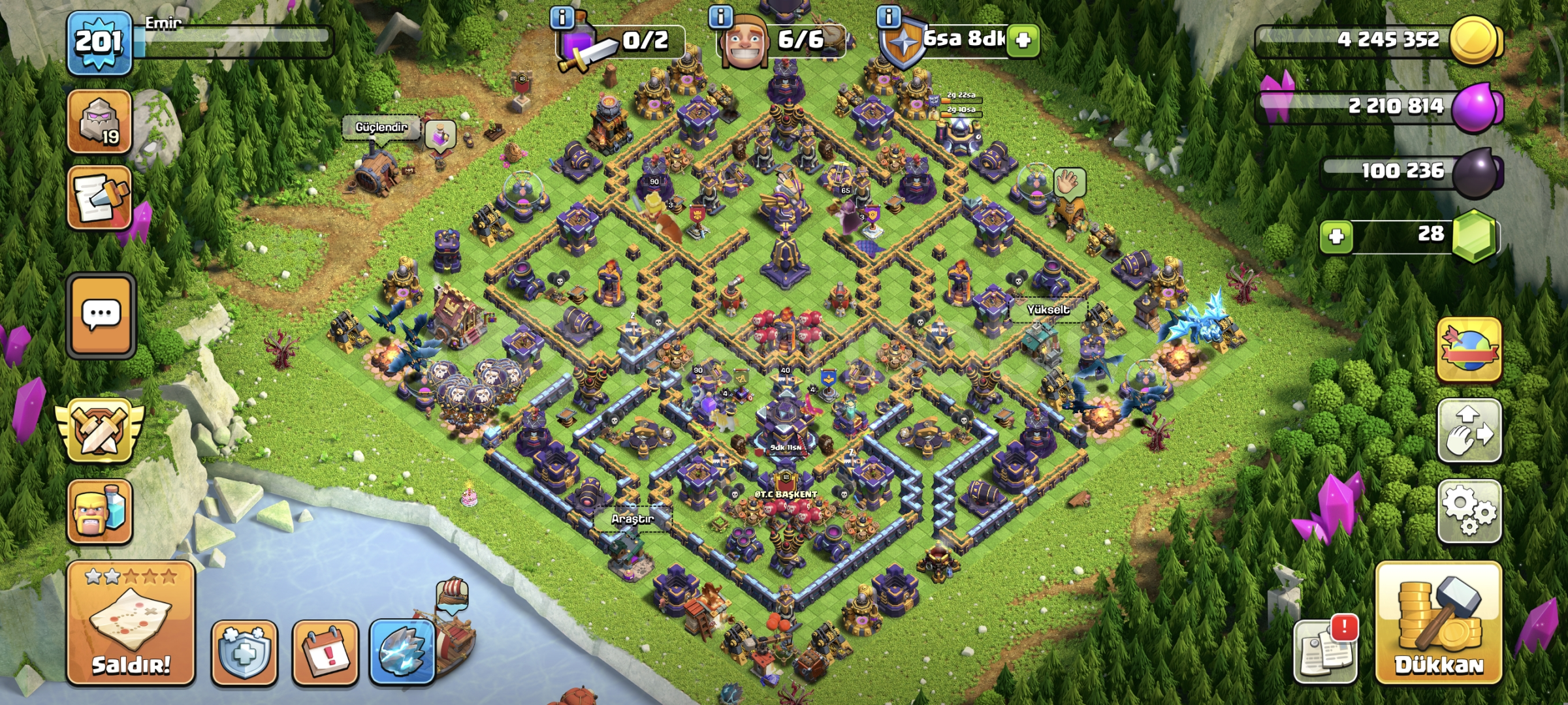 Dop dolu hesap6 inşaatçıYan köy fullSavunmalar fullKahramanlar full minyon prens haricFırsat hesabiKostumleri varAktif kullanimdaİstediginiz vakit alabilirsiniz anında dönüş yapılıcak