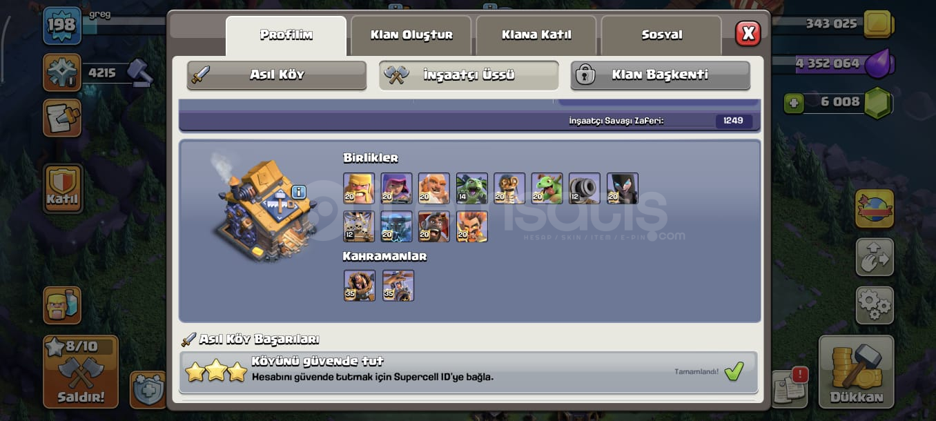 Otomatik teslimattır aktif olmasamda alabilirsiniz!Eposta:şifre formatında ve hesabı nasıl üzerinize alacağınızın hakkında bütün bilgiler satın alınca otomatik iletilecek!Hesaba detaylıca bakmak için:#QGCR09JU0Hesaplar asla geri çekilmez!Hesap koruması aktif değildir!Yeni güncelleme sebebiyle sezon geçişlerinde CLASH ROYALE HESAPLARINDA kupa kaybı yaşanabiliyor bilgi...