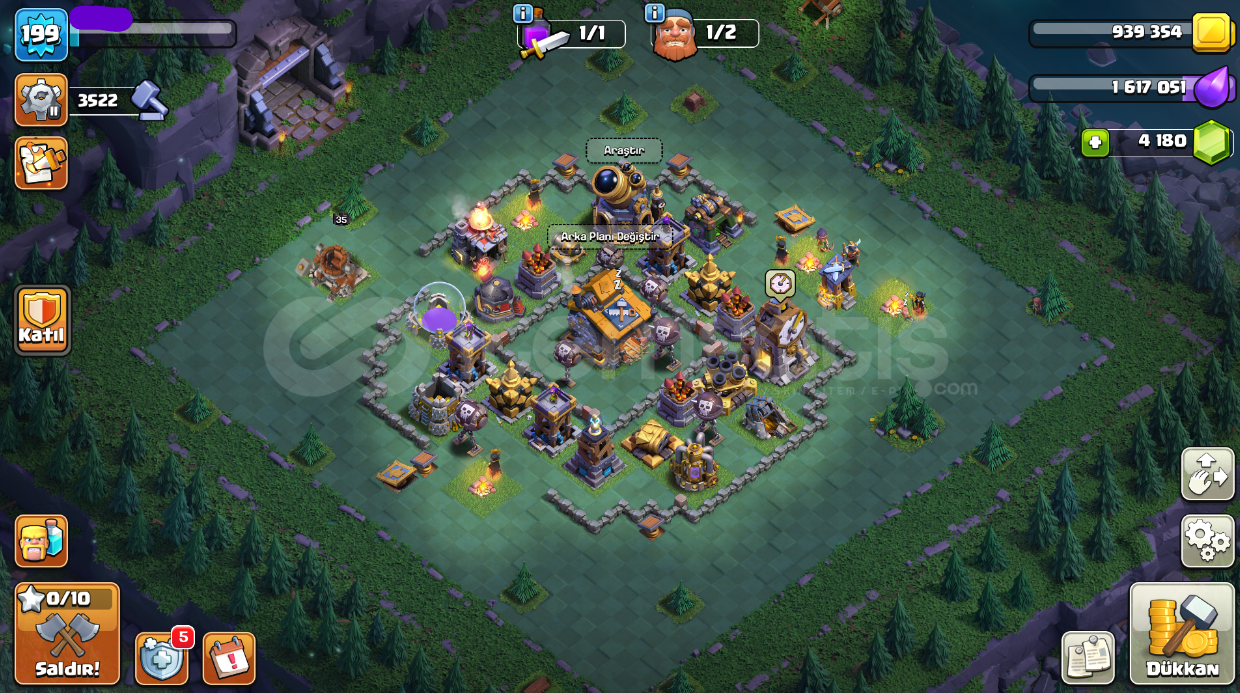✨TH 15 | SAVUNMALAR MAX | 199 LVL | 4180 Taş✨