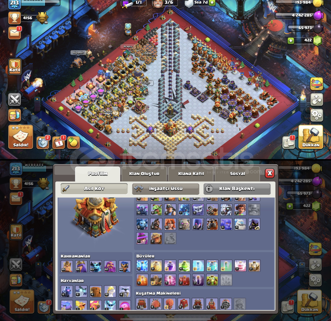 +50 SATIŞ GÜVENCESİ VE YÜZLERCE MÜŞTERİMİZİN MEMNUNİYETİNİ BELİRTTİĞİ YORUMLARIYLA SİZLERE EN GÜVENLİ ŞEKİLDE EN İYİ CLASH OF CLANS HESAPLARINI SUNUYORUZ..
