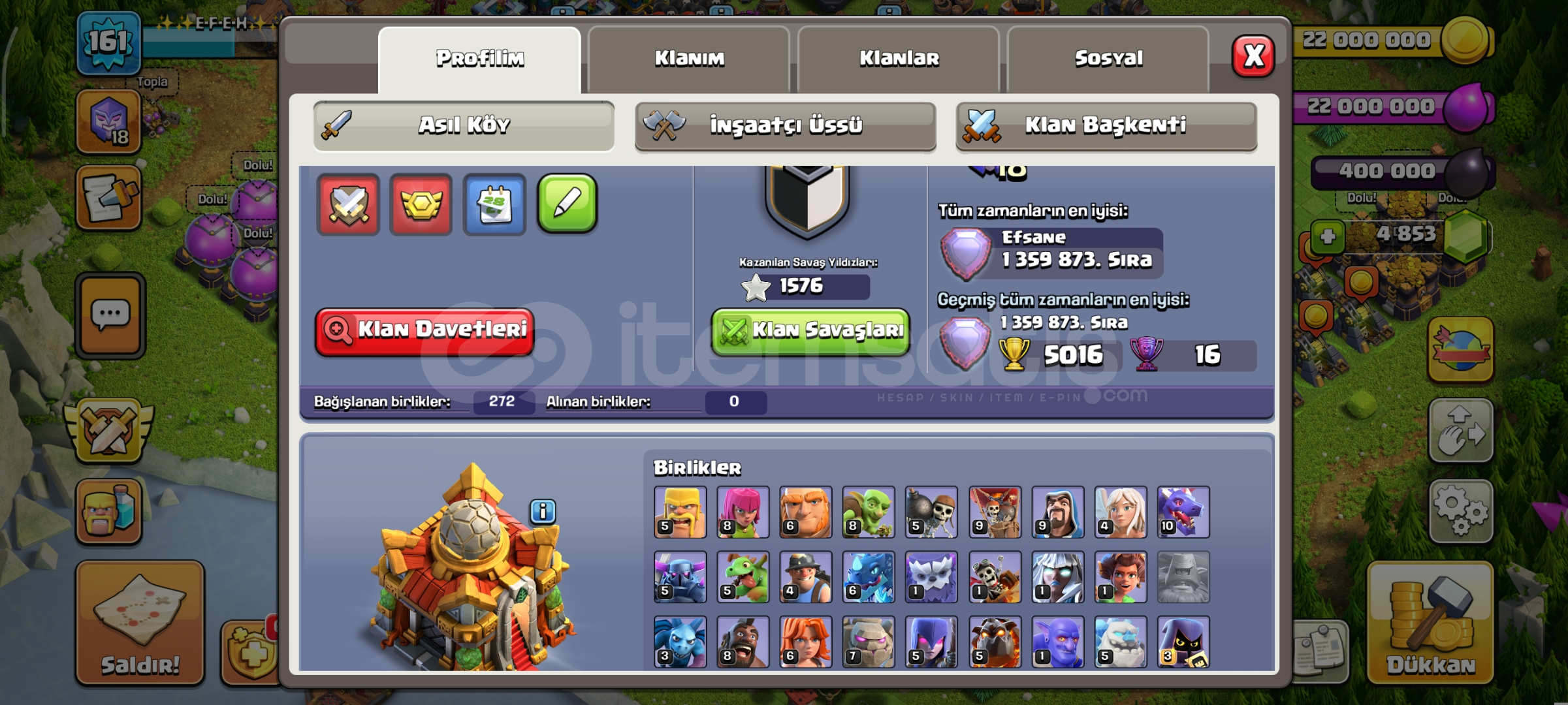 ⭐ SAĞLAM DEMİRCİLİ ⚡TH 16 MAX DUVARLI ALTİN BİLET AKTİF HESAP ⭐🔥 HESABIN İÇERİĞİ;💎İSİM DEĞİŞTİRME 1000 ELMASİTİR💎4800+ ELMAS MEVCUTTUR 🧱 DUVALARİ MAX+MAXTİR RESİMDE GÖRÜLDÜĞÜ GİBİ (🛡️ Duvarlar köyünüzün en önemli savunmasıdır)🏅+ 540 L...