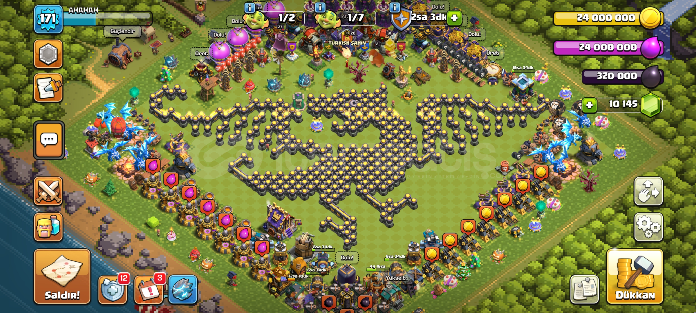 ⭐ BÜYÜK FIRSAT HESABI ⭐ TH 17 MAX DUVARLI HESAP🔥 HESABIN İÇERİĞİ;💎İSİM DEĞİŞTİRME 500 ELMASİTİR🧱 DUVALARİ MAX+MAXTİR RESİMDE GÖRÜLDÜĞÜ GİBİ (🛡️ Duvarlar köyünüzün en önemli savunmasıdır)🎁 ÖZEL DEKORLAR VARDIR 🏆700+ LİG MADALYASI 🏆4500+ BASKNET MADALYA...
