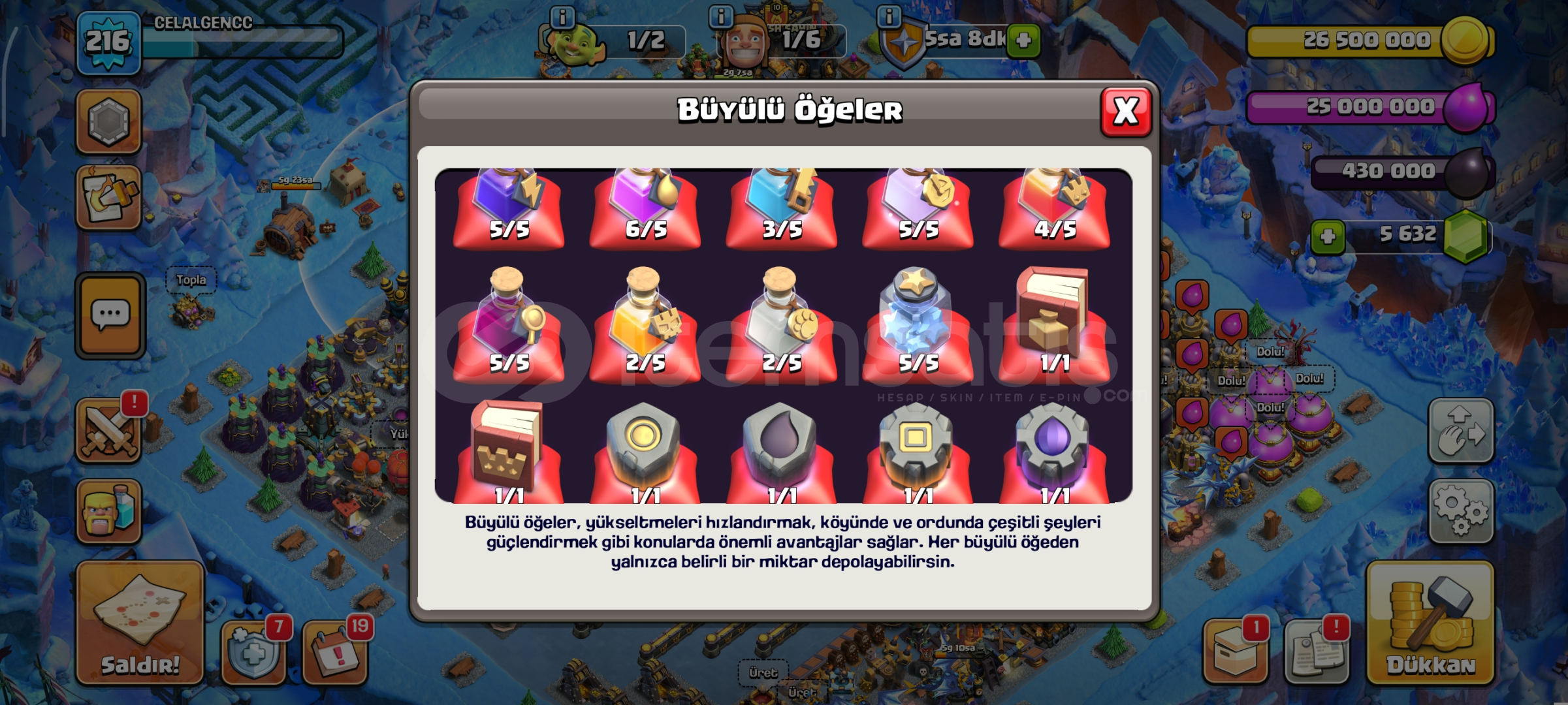⭐ TH 17 216 LVL⚡ MAX DUVARLI TEMİZ EMEK HESABI  ⭐🔥 HESABIN İÇERİĞİ;💎İSİM DEĞİŞTİRME 1000 ELMASİTİR💎5600+ ELMAS MEVCUTTUR🧱 DUVALARİ MAX+MAXTİR RESİMDE GÖRÜLDÜĞÜ GİBİ (🛡️ Duvarlar köyünüzün en önemli savunmasıdır)🎁 TÜM SAMPİYİNLARDA KOSTÜM MEVCU...