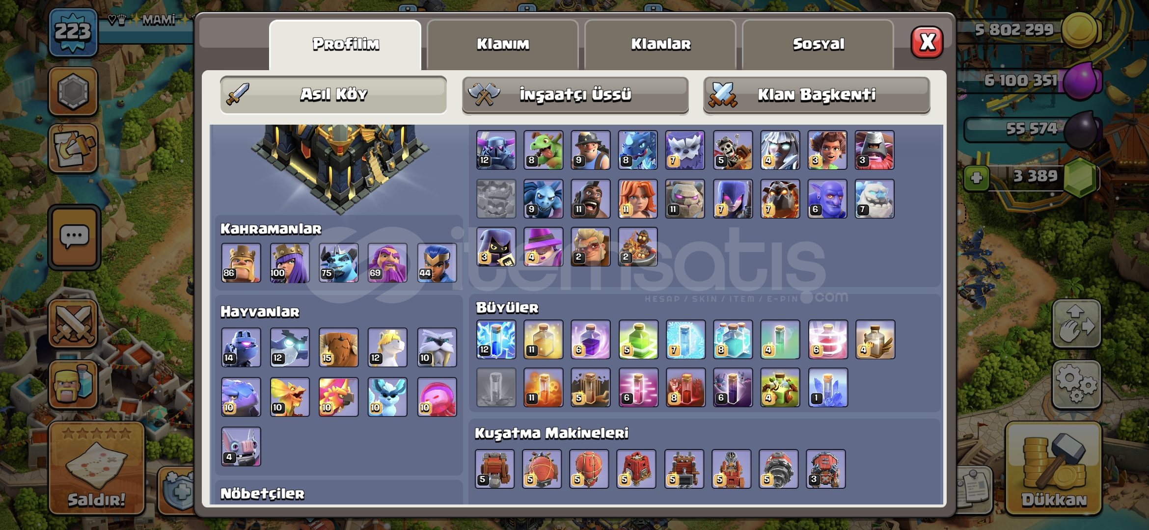Th 17 223 level 3300 taşlı hesap kahramanlar lwvelli labaratuvar seviyeli 500 e yakın lig madalyası var 6 inşaatcılı hesap büyülü destansı kış piksel ilkel yaz clash a rama arkamplanları var 12 kostum var bol büyülü öğeleri var wkipman süper