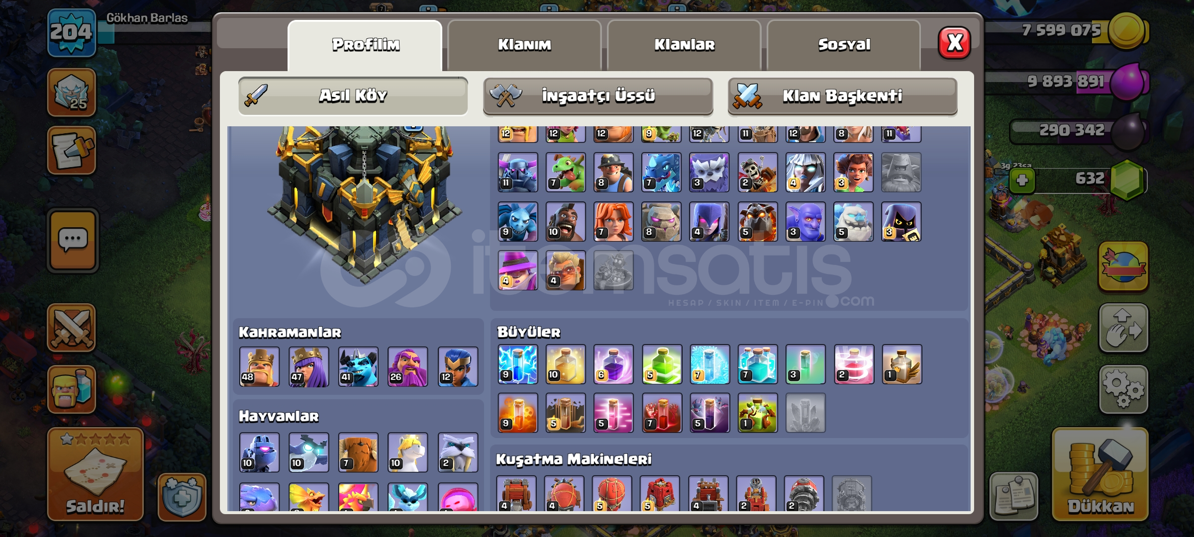 Th 17 savunma ve duvarları max hesaptır. Sadece herolar düşük seviye. En uygun th 17 hesaplardan biri vereceğiniz gmaili supercell idden aktarırım. 2000+ ks yıldızı 204 lvl hesap koruma aktif değil. Pazarlık yapılır