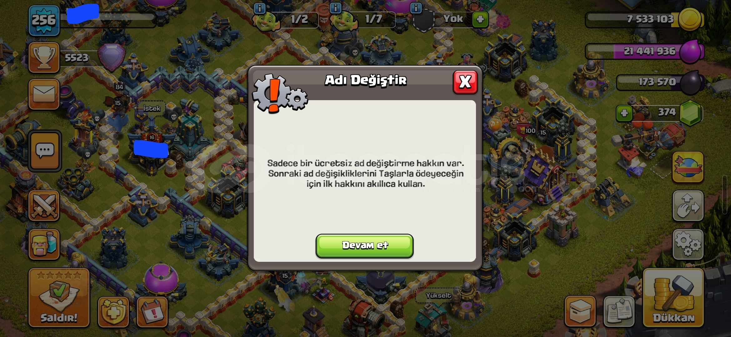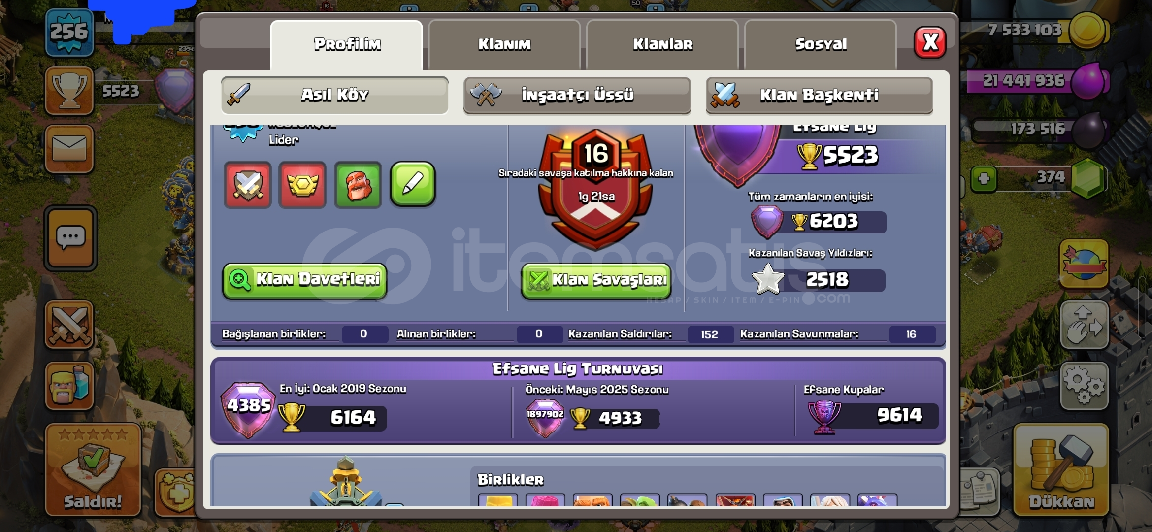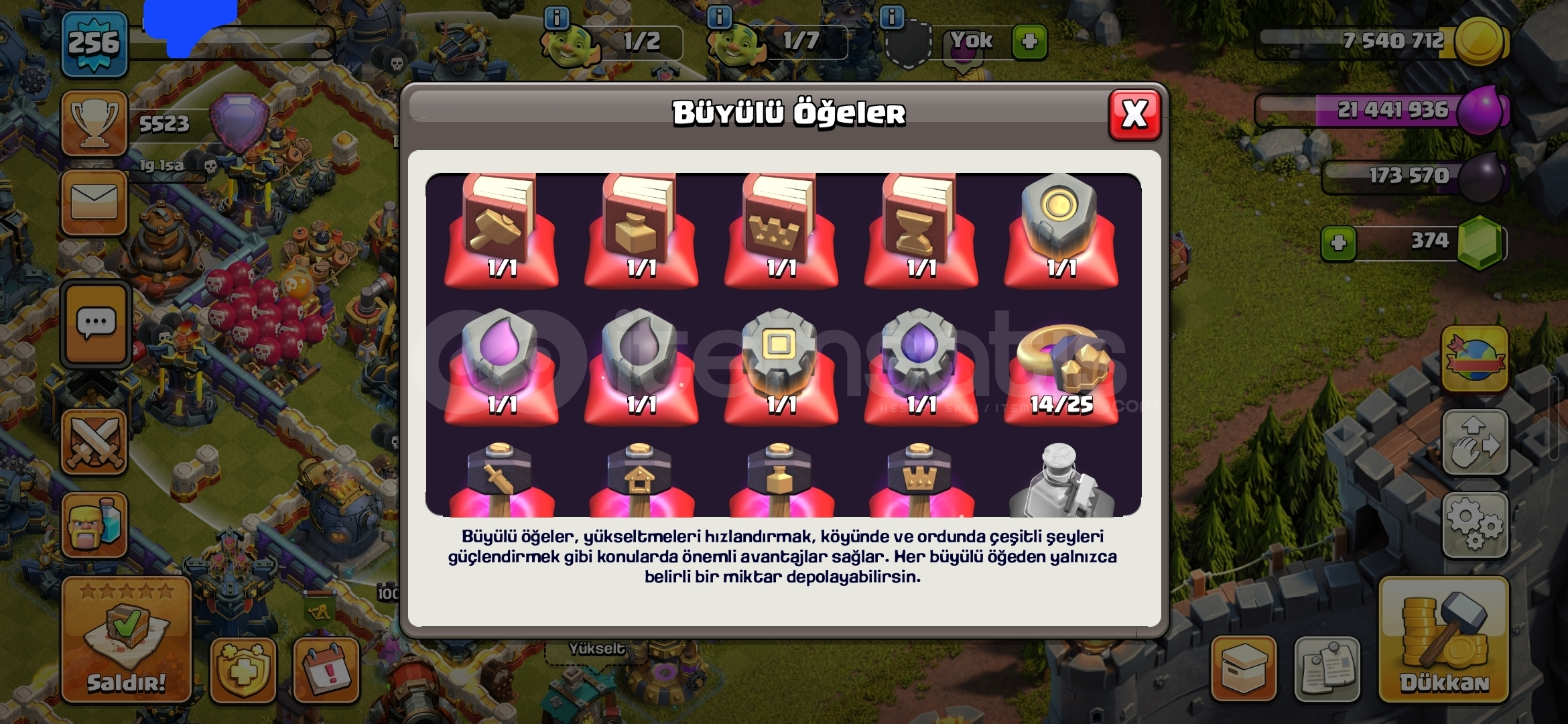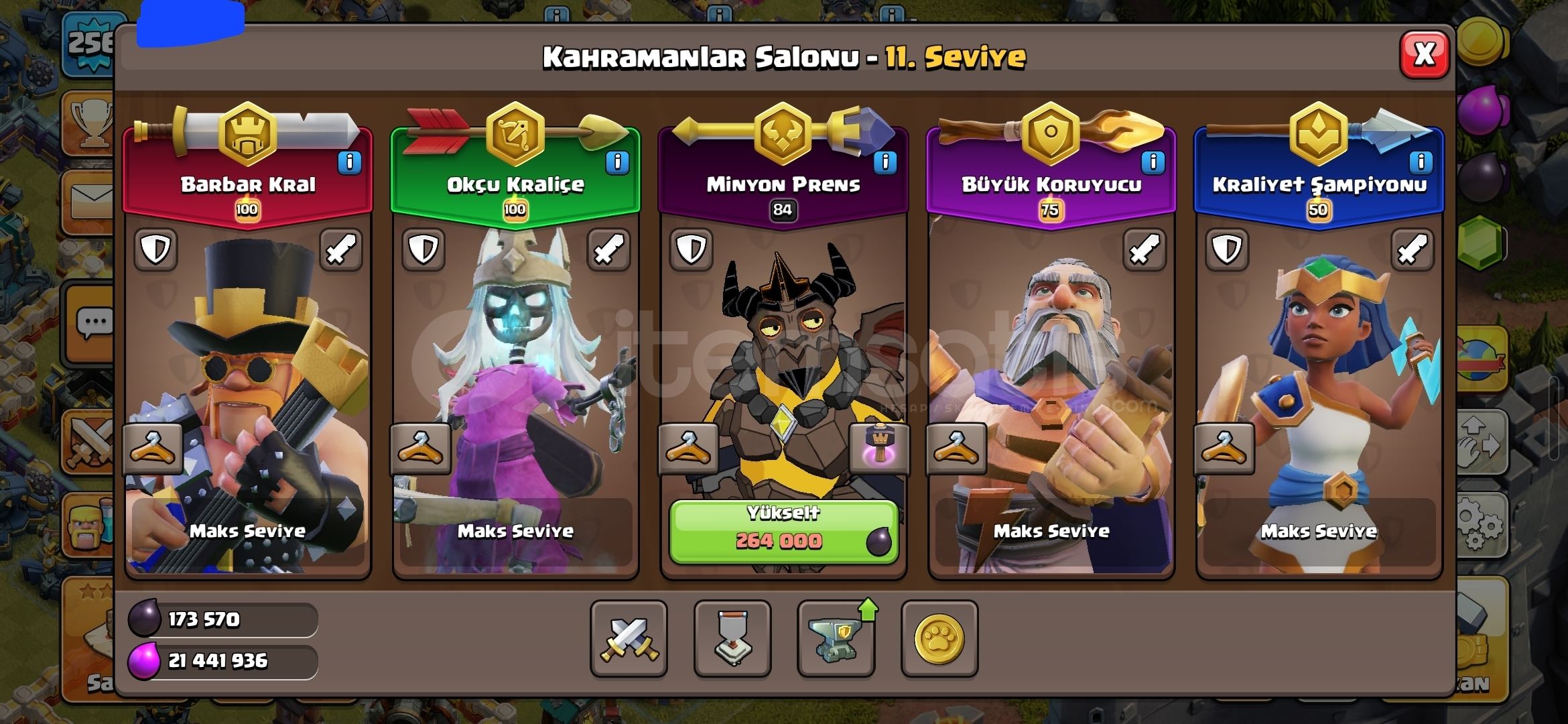 Th 17Yan köy full + full hiç bir yükseltme kalmamıştıBüyülü öğeler doludurDemirci iyi durumdadırHayvanlar iyi durumdadır Ücretsiz isim değiştirme var256 sv6 inşaatcılıPass açık 1090 madalya395 Taş2518 savaş yıldızıDünyada ilk 4385 e çıktıKral, kraliçe, büyük koruyucu ve kraliyet şampiyonu full Minyon prens 84 sv Sayı...