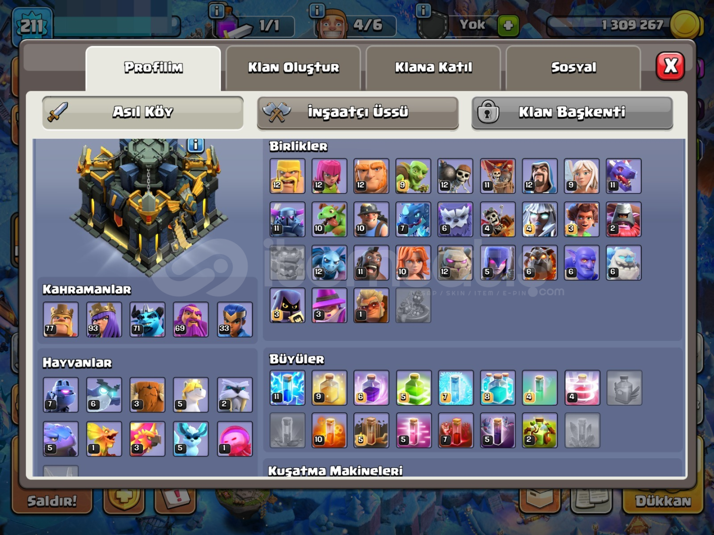 Alicisina simdiden hayirli olsun hesapta bircok arka plan ve kostum bulunmaktadir Th 17 seviye belediye binasi ve yuksek tas ve klan puani bulunmaktad...