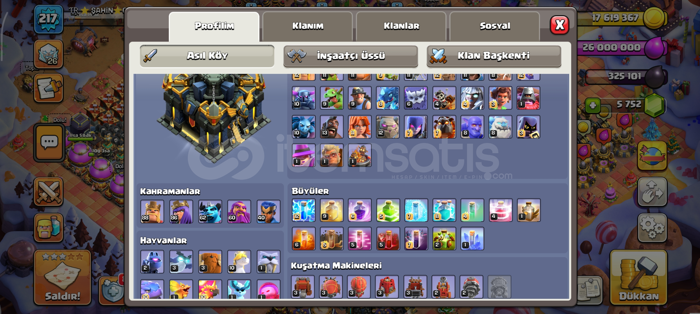 ⭐ TH 17 MAX HESAP BÜTÇE DOSTU ⭐🧱MAX + MAX DUVARLI HESAP 💎5700+ ELMAS MEVCUTTUR 🔥KAHRAMAN SEVİYELERİ YÜKSEK🎁 KOLEKSİYONLUK ÖZEL DEKORLAR VARDIR ❗HESAP KORUMASI YOKTUR MAİLİ İLE TESLİM EDİLECEK ÇIKIŞ VİDEOSU VS ATILIR