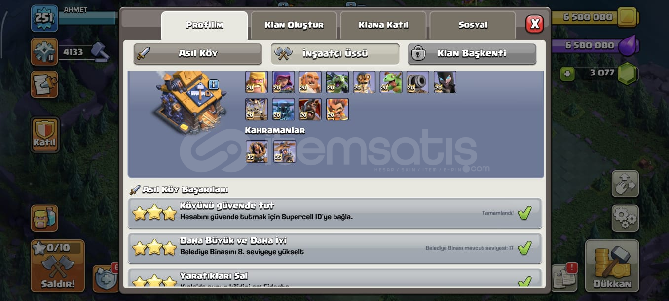 Hesap A+ Kalite olup TR Lokasyonlu bir hesaptır.Hesap gmail alan adına sahiptir.Hesapta asla sorun yaşanmaz.Emek hesabıdır.Hesabı aldıkdan sonra sadece tek siz erişecek tek sahibi siz olacaksınız.Yan köy maxtır.TH 18 E HAZIR ŞÜPERŞARJ DAHİL MAXTIR!