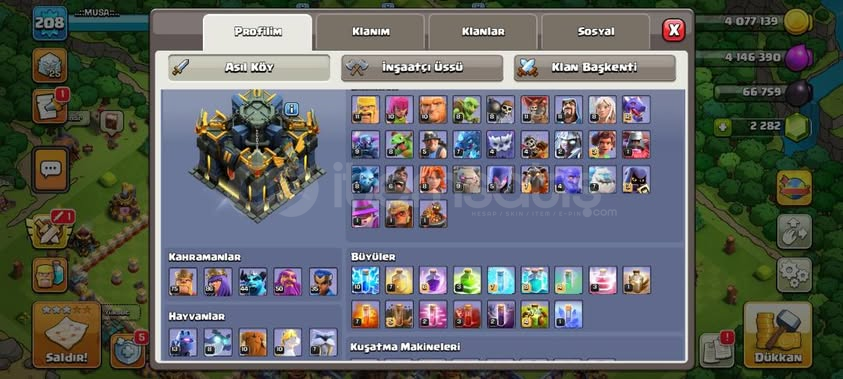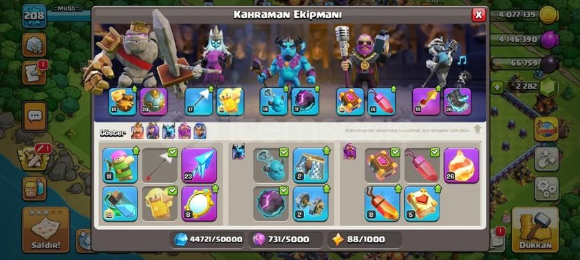 TH 17 YE YENİ GEÇMİŞ208 LVL HESAPGOLEM KRAL ALTINSÜPER TAKIM KRALI EFSANEVİHAYALET KRALİÇE EFSANEVİGÖLGE KRALİÇE ALTINPARTİ KORUYUSU ALTINKABARE ŞAMPİYON ALTINGÖLGE ŞAMPİYON ALTIN-----------------------------------------------------------------26 LVL ELEKTRO ÇİZME14 LVL ROKET MIZRAK26 LVL ALEV TOPU23 LVL DONMUŞ OK8 LVL SİHİRLİ AYNA20 LVL DİKENLİ TOP8 LVL DEV E...