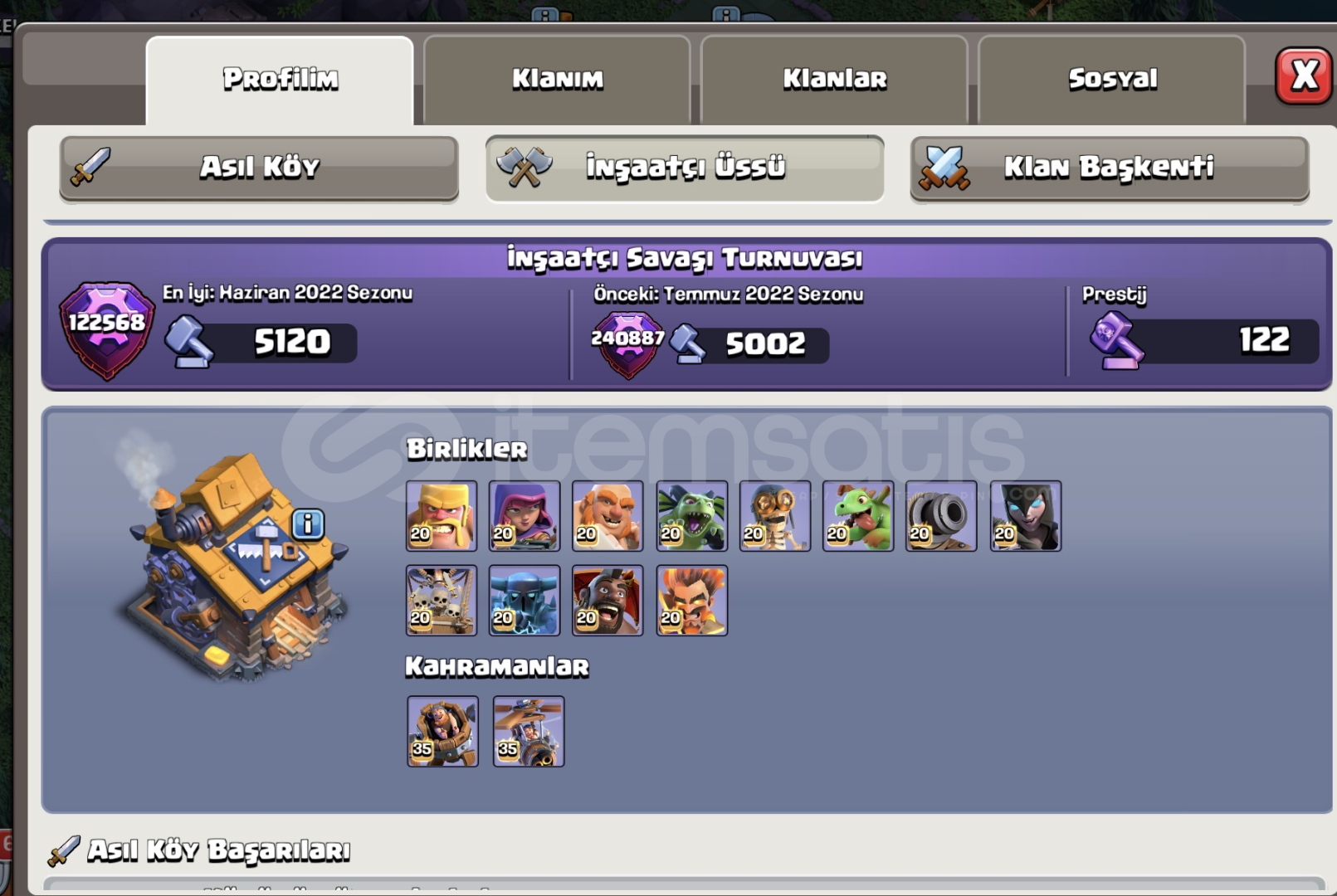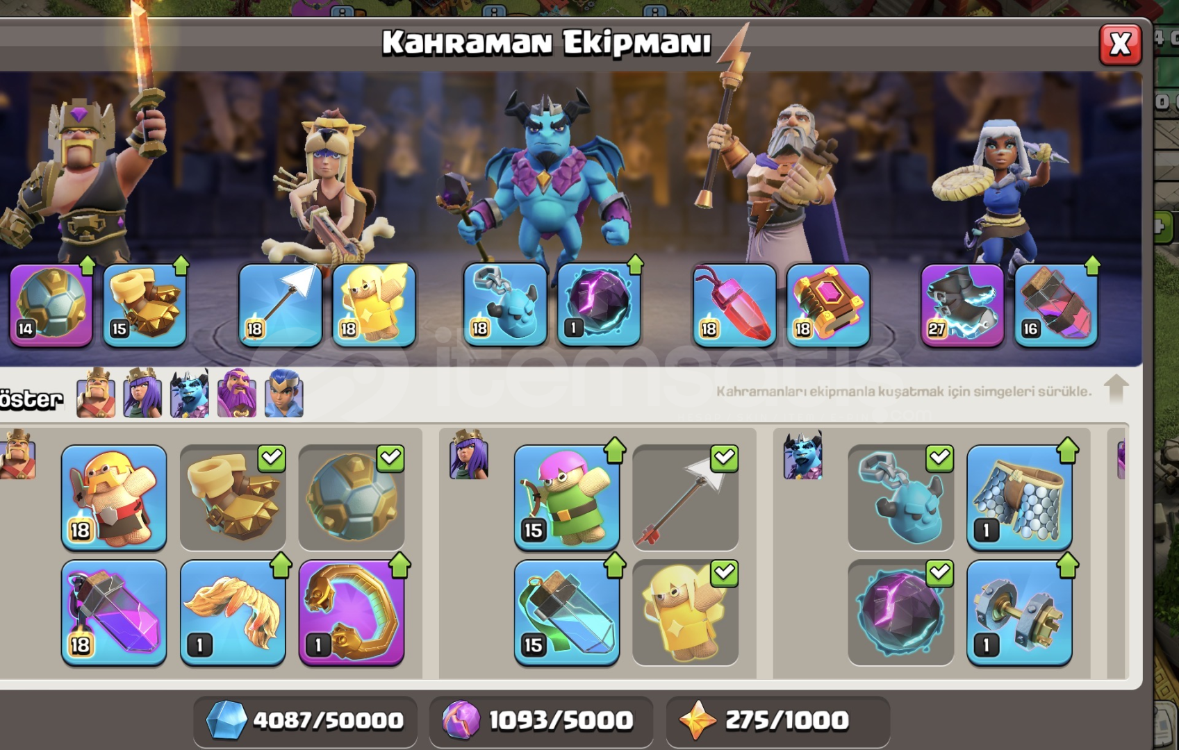 Hesap HakkındaÖZEL İNDİRİMLİ ALTIN BİLET MECVUT DİLERSENİZ UYGUNA ALABİLİRSİNİZ????Th17 Hesabım Duvar Dışı Yarı Maxtır.????+24 Kostüm 6 Arka Plan Bulunmaktadır.1219 Lig Madalyası 2162 Savaş Yıldızı Usta Lig 242 Seviye???? Dikenli Top,Yılan Bilekliği,Lav Balon Kuklası , Elektro Çizmeler????Yan Köy Maxxx duvarlar hariç6.İnşaat...