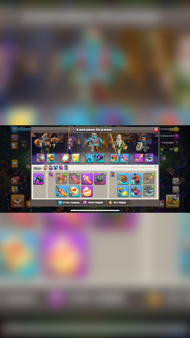 Hesabım Th 17 Max Geçişlidir Yeni gelen duvarlardan en az 60-70 tanesi basılmıştır kahramanlara bir kaç level dahi verişmiştir tüm rünlerden birer adet vardır 20 küsürden fazla kostüm + 1 tane arka plan mevcuttur alıcısına şimdiden hayırlı olsun hesabın ilk sahibiyim