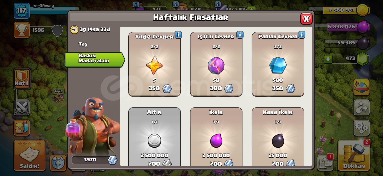 TH11 626Madalya 473Elmas Ganimet Ekipmanlar