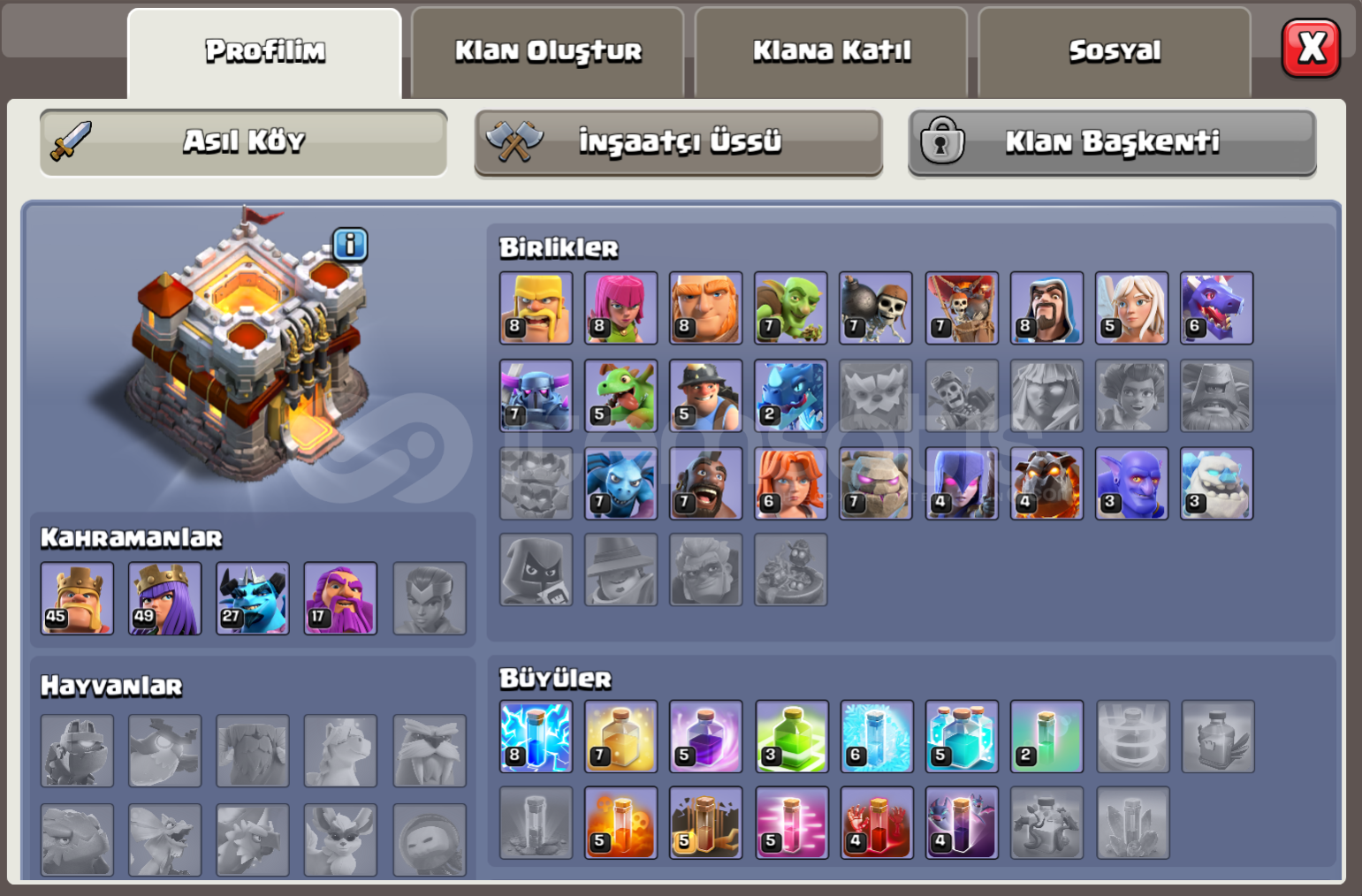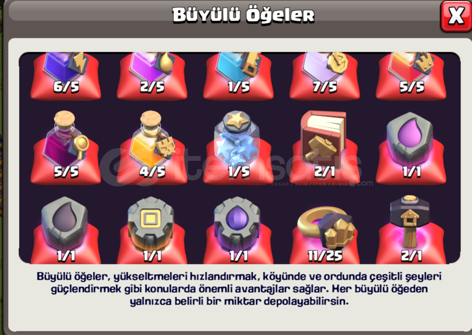 Hesabın özellikleri:belediye 11 fule yakın.(tuzaklar,duvarlar,kahramanlar dışında savunmalar filan ful).3600 Taş var2500 LİG MADALYASI VAR115 seviyelaboratuvardaki herşey belediye binasına göre max.NASIL TESLİM EDİLİR:hesabın epostası sizin verdiğiniz eposta adresinin üzerine devredilirsize videolu kanıt atılır.GERİ ÇEKİLME OLURMU?HAYIR. kesinlikle geri çekilme durumu ...