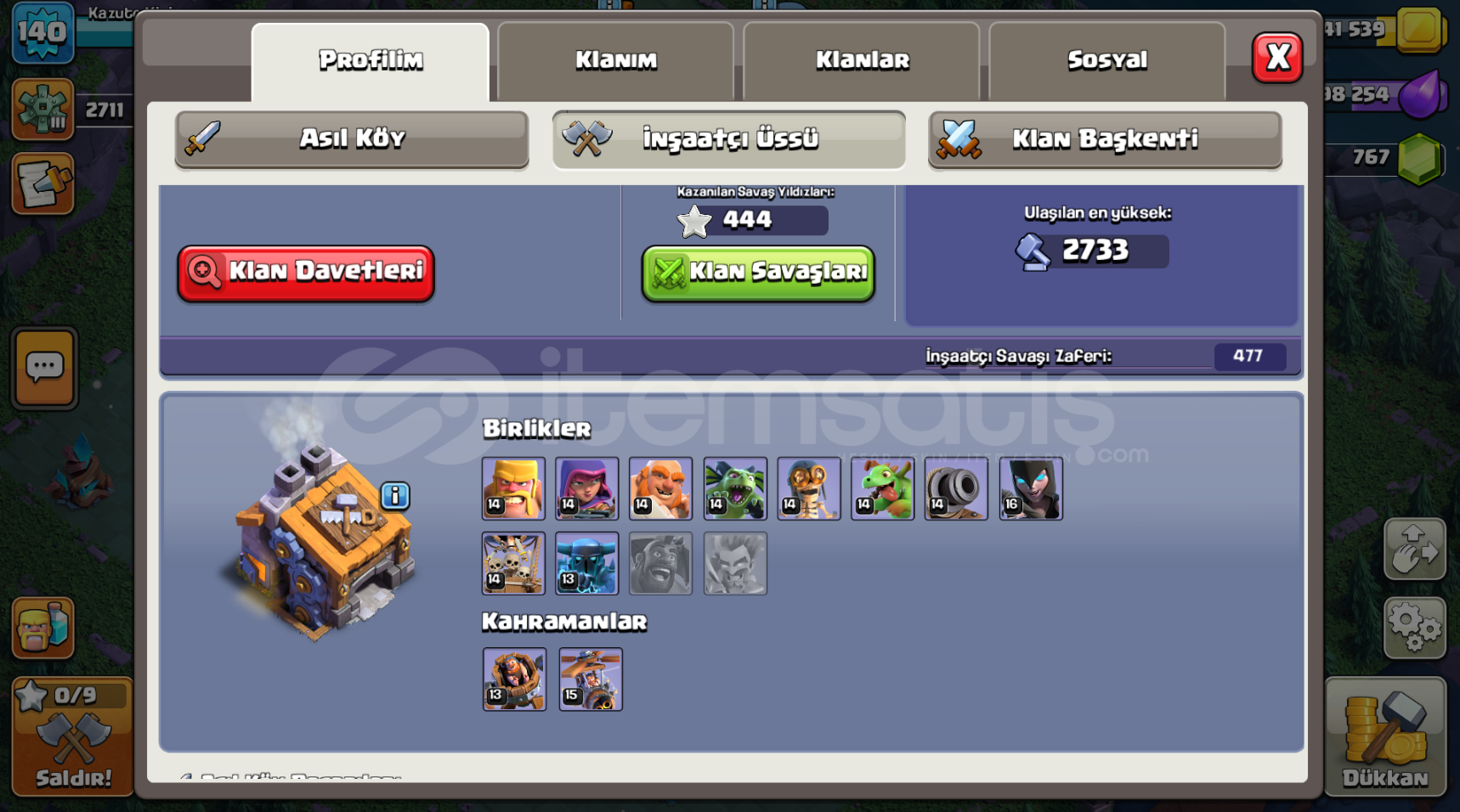 HESAP TH13 140 LEVEL DEPOLAR FULL+GANİMET FULL 742 YEŞİL TAŞAĞIR SAVUNMALAR MAXLANMIŞTIRYAN KÖY TH8 MAXA YAKINDIRKAHRAMANLAR 55-54-40-24-6 LEVELDİRKELEPİR MAXLANIP TH14'E GEÇMELİK HESAPTIR.HESAP OTOMATİLK TESLİMATTIR İSTEDİĞİNİZ ZAMAN ALABİLİRSİNİZ SİZE MAİLİ VE ŞİFRESİYLE BERABER VERİLECEKTİR. MAİLİ YAKLAŞIK 1 HAFTA SONRA DEĞ...