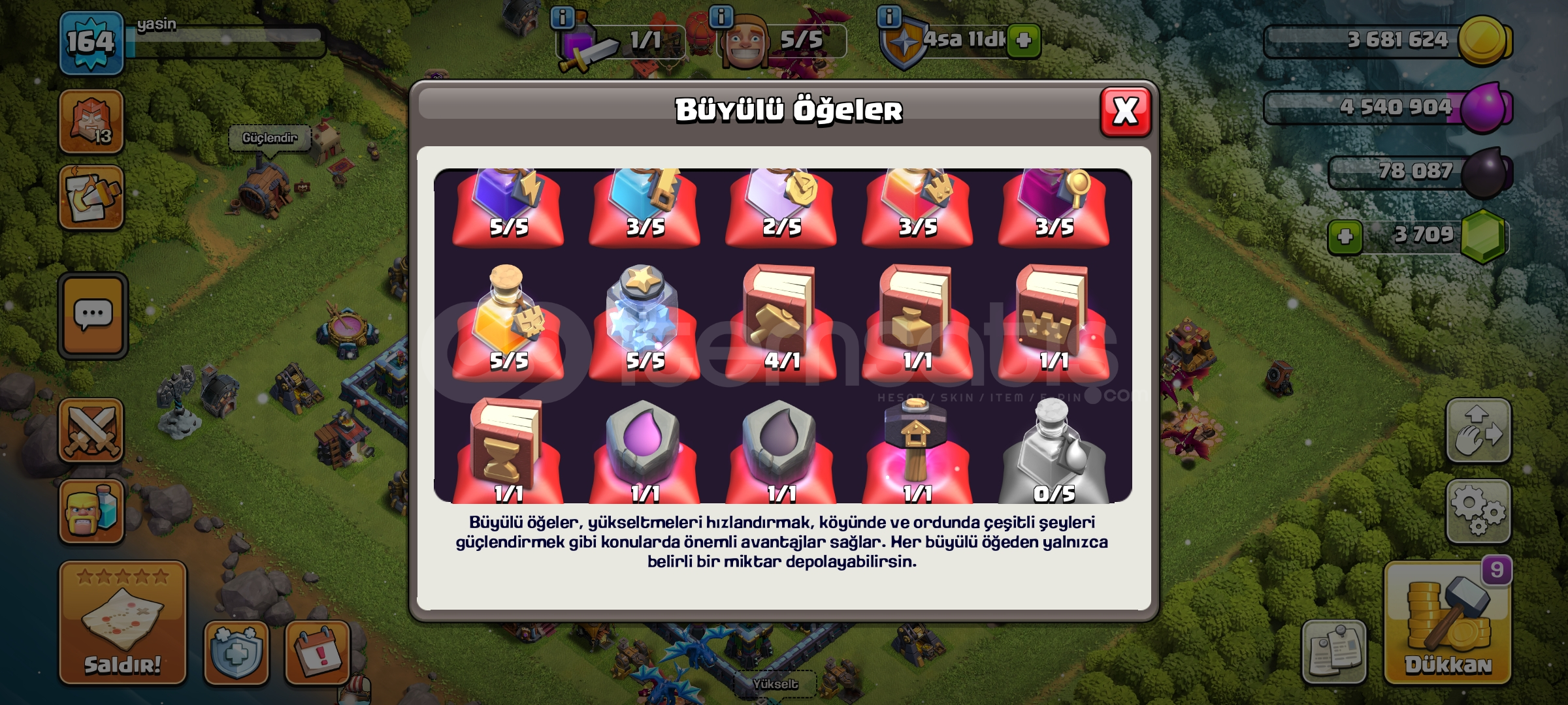 Hesap fulldür ekstraları vardır. Hesapta bolca elmas vardır. Her kahramanın kostümü vardır. Belediye hazinesi kitaplarla doludur. Bedavadan biraz pahalı hesap kaçırma...